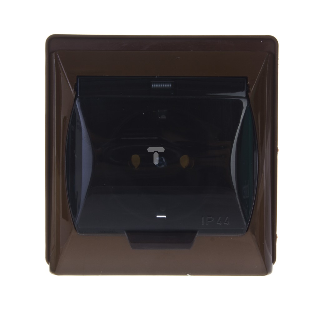 AKCENT Gniazdo hermetyczne pojedyncze z/u schuko 16A 250V IP44 klapka transparentna brązowe GPH-1AS/24/d