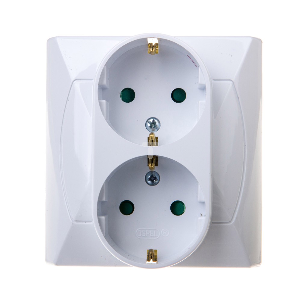 AKCENT Gniazdo podwójne z/u schuko 16A 250V IP20 z przesłonami torów białe GP-2ASP/00
