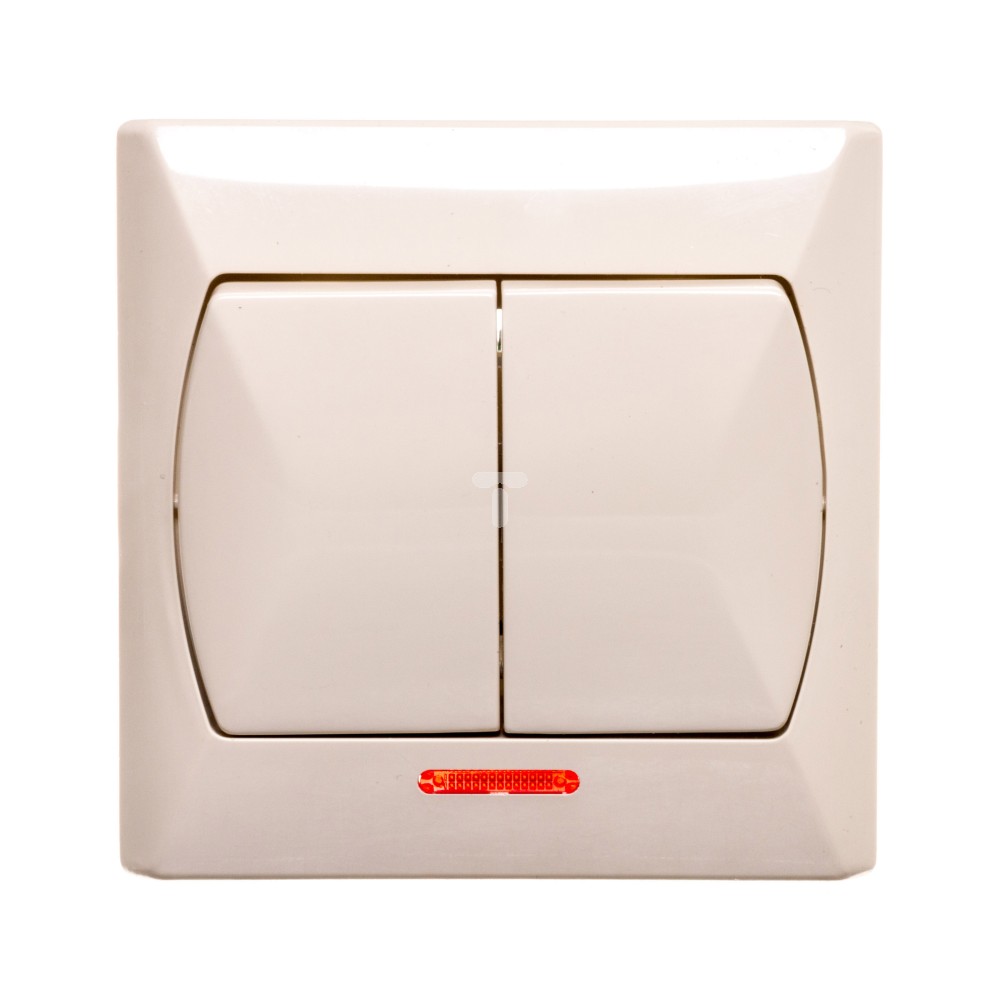 AKCENT Łącznik świecznikowy podwójny 10AX 250V IP20 podświetlenie LED pomarańczowe beżowy ŁP-2AS/01