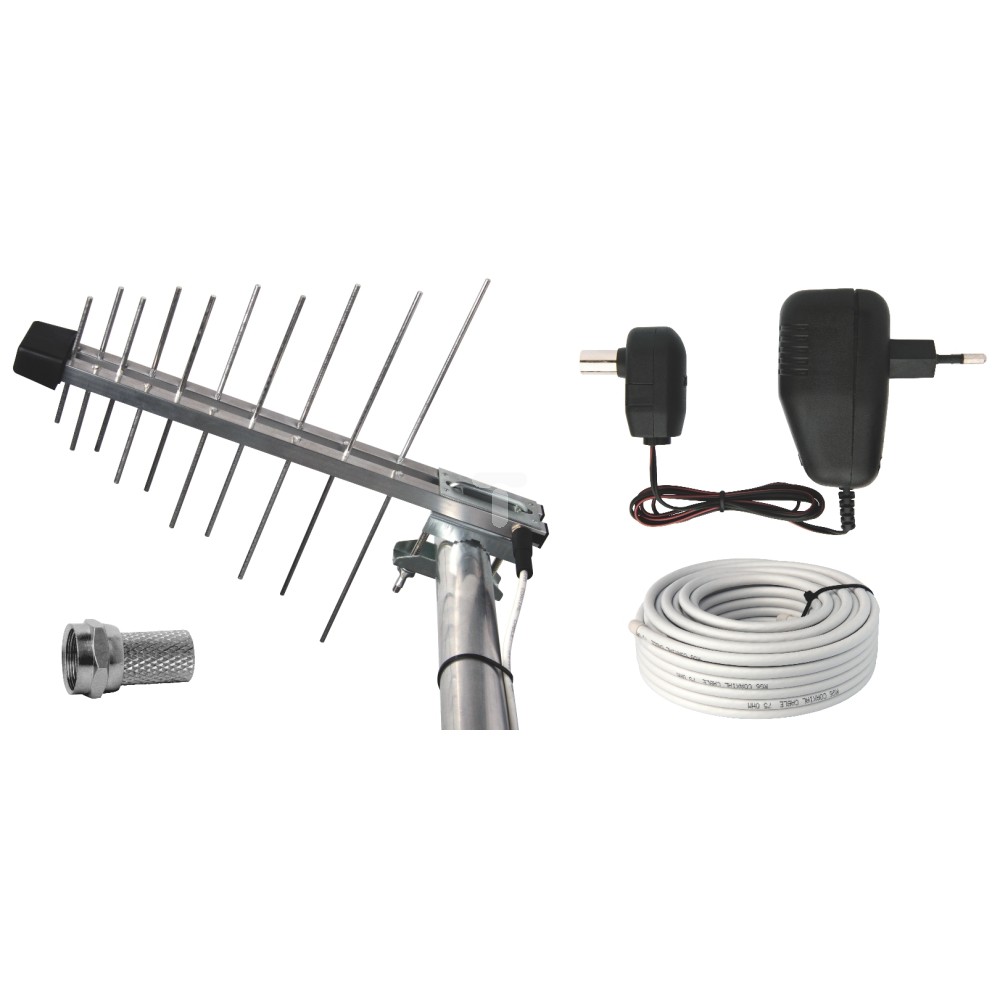 Antena zewnętrzna UHF 470-862 MHz z wzmacniaczem kabel 10m 1xzłącze F BEN-20 G/Z Z ZASILACZEM 2704020100 J0667