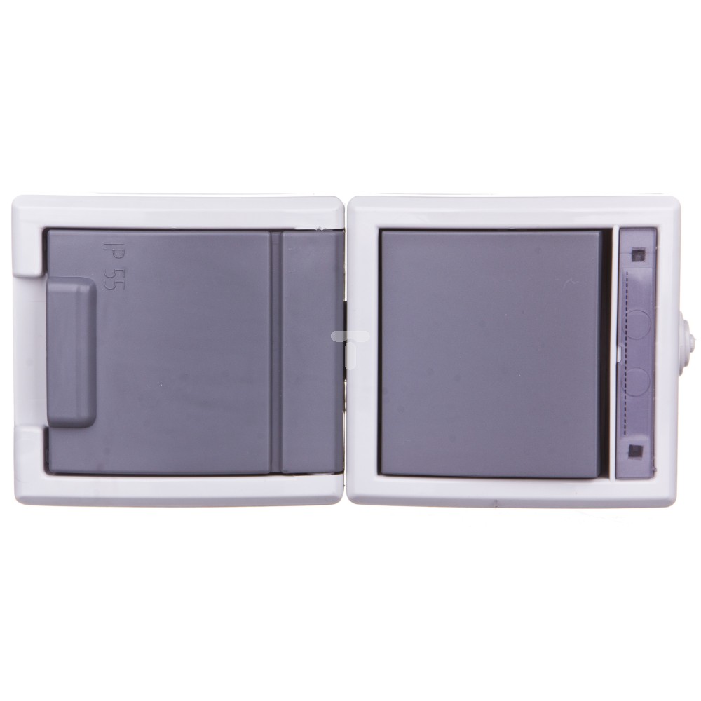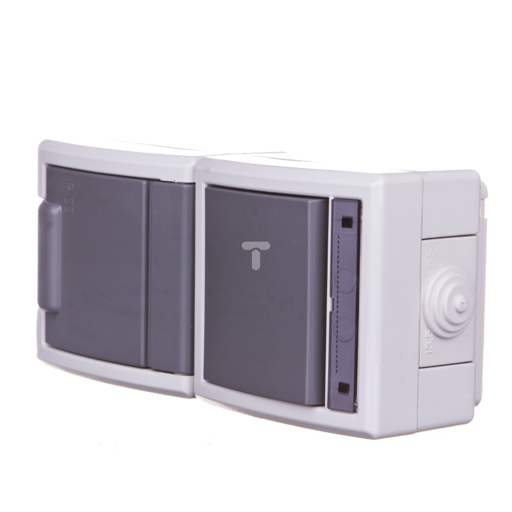 AQUANT Gniazdo hermetyczne natykowe pojedyncze z/u + łącznik schodowy jednobiegunowy z klapką dymną 16A 250V IP55 szare1256-10