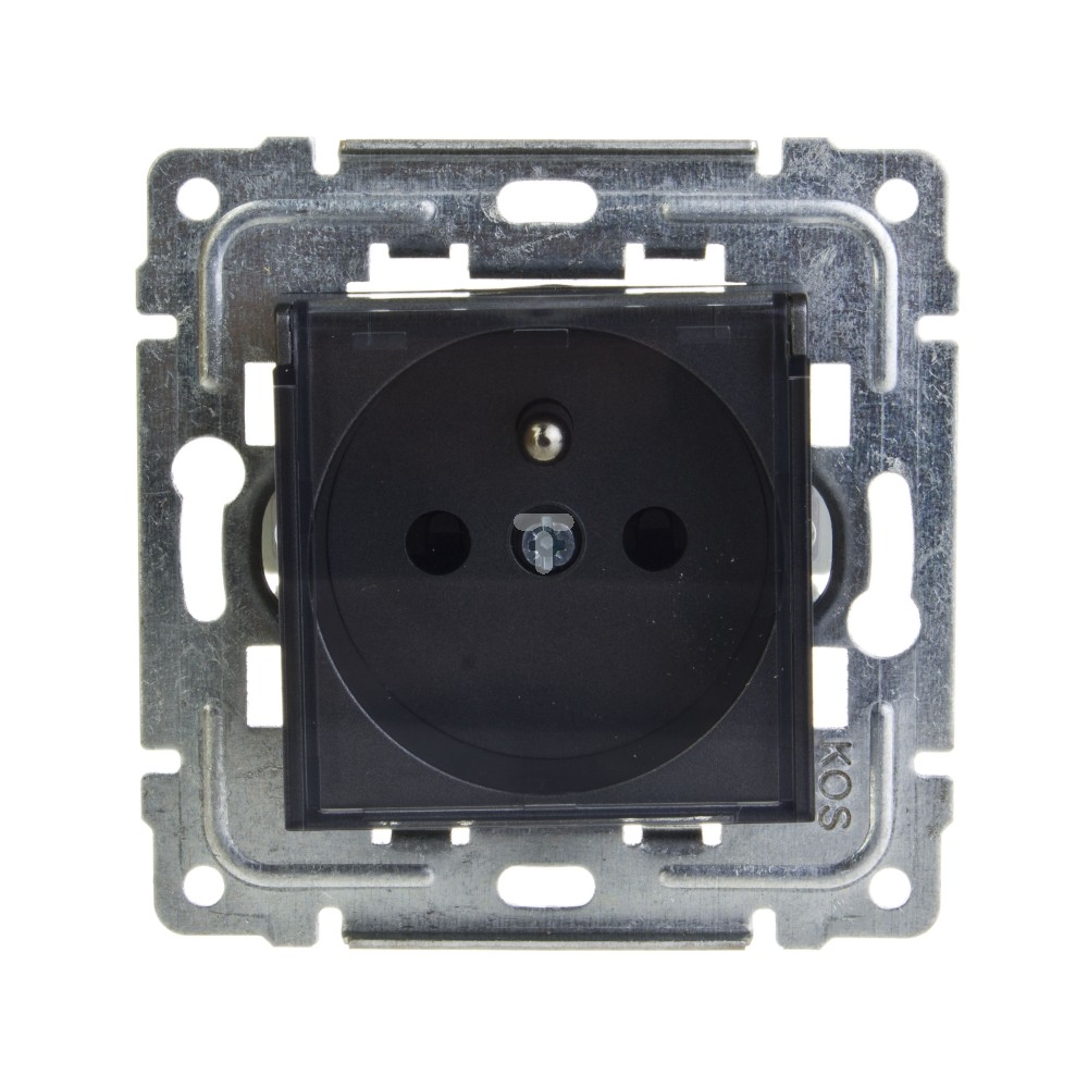 DANTE Gniazdo pojedyncze z/u 16A IP40 z przesłoną torów i klapką transparentną grafitowe 456039