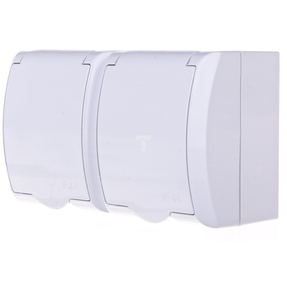 FALA Gniazdo hermetyczne podwójne z/u 16A IP44 z przesłonami torów i klapką białe GNH-2HZP/00/w