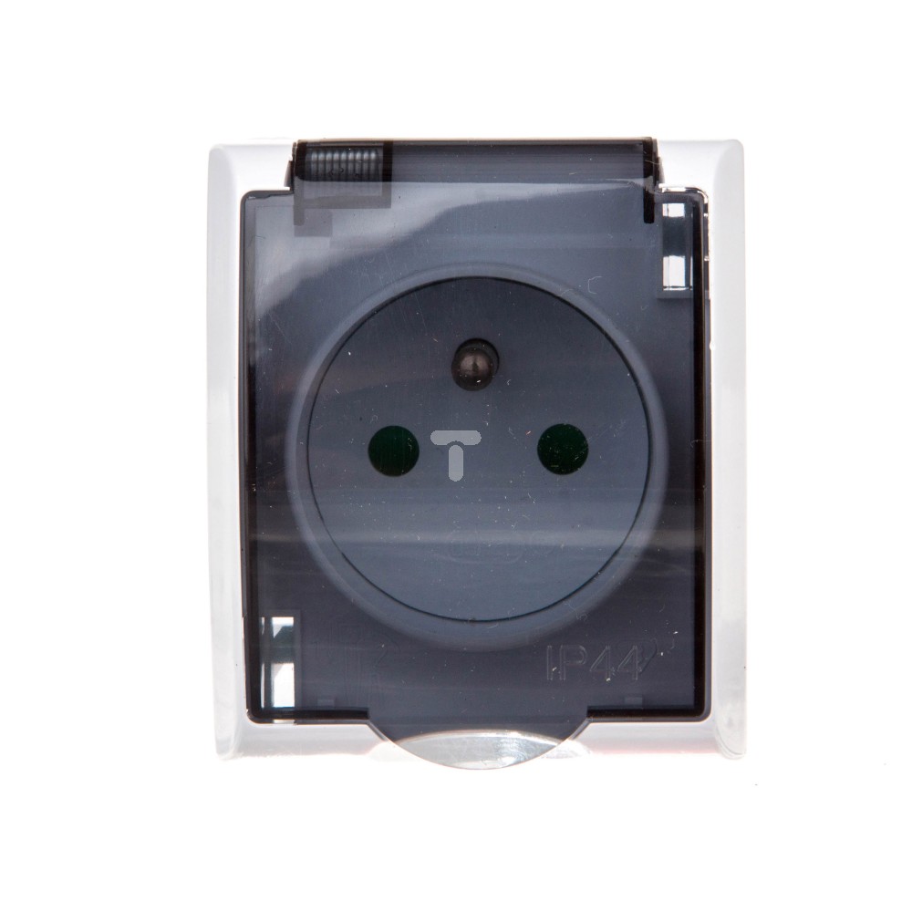 FALA Gniazdo hermetyczne pojedyncze z/u 16A IP44 z przesłonami torów i klapką przezroczystą białe GNH-1HZP/00/d
