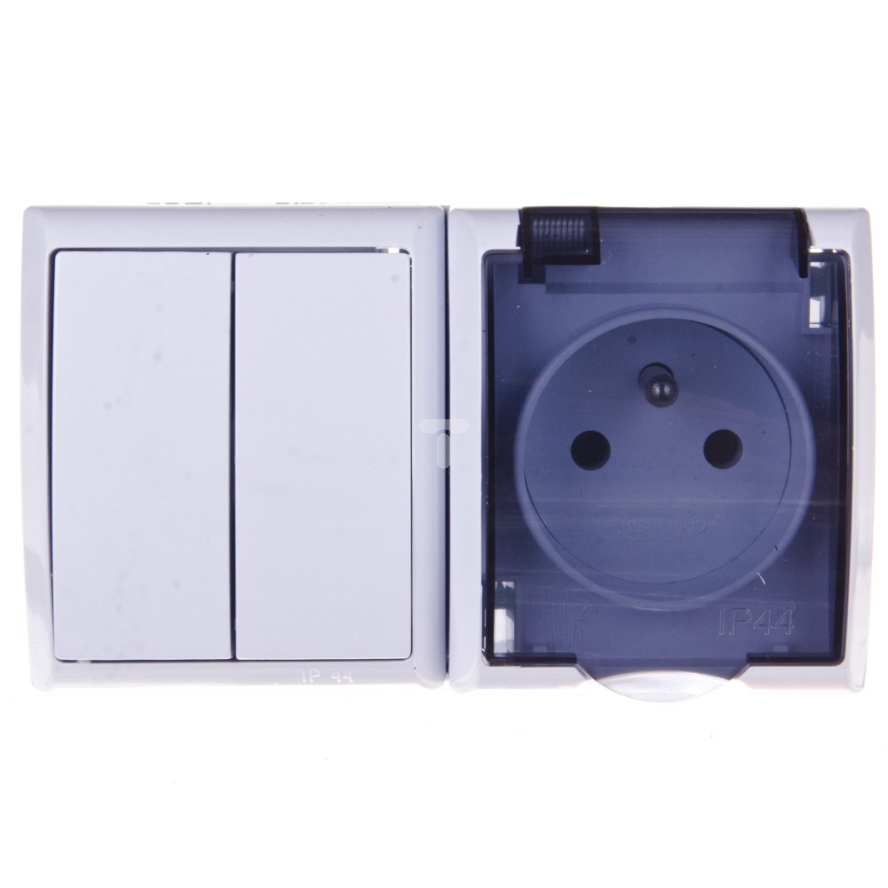 FALA Łącznik hermetyczny świecznikowy + gniazdo hermetyczne pojedyncze z/u z klapką przezroczystą biały ZH-Ł2G/00/d