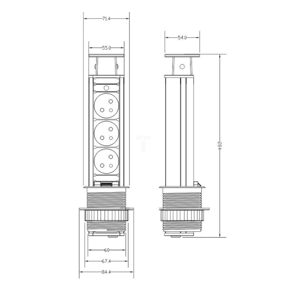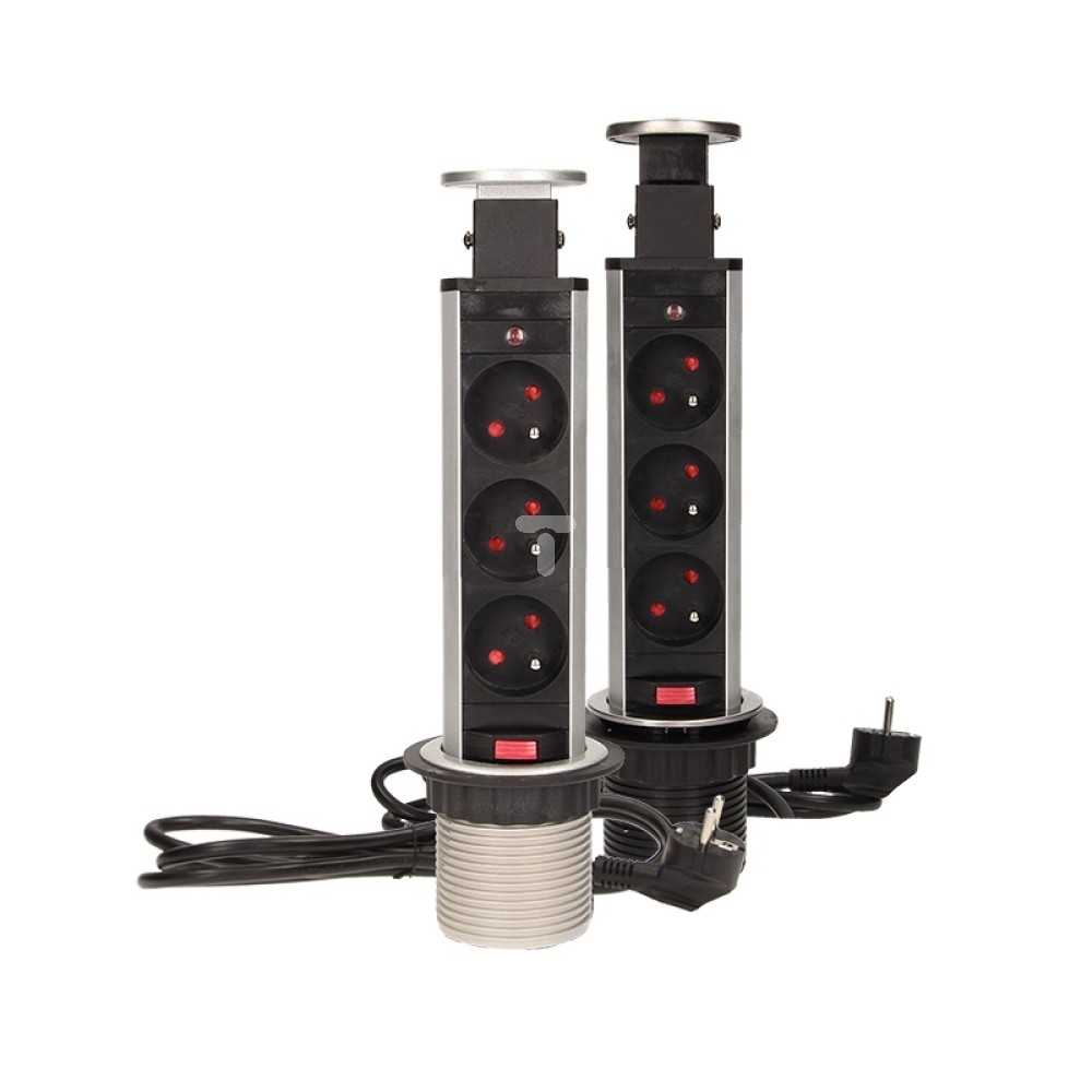 Gniazdo meblowe fi6cm, 3x250V AC wysuwane z blatu z blokadą i przewodem 1,8m srebrne OR-AE-1347