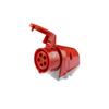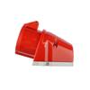 Gniazdo stałe Quick-Connect 16A 3P+N+PE 200/346 do 240/415V 6h IP44 50 i 60Hz, Wielkość obudowy wielkość obudowy 90x87, Zadławienie: M25 z góry, Kolor indentyfikacyjny: czerwony RAL 3000, Izolator/Kontakty: Izolator zintegrowany z obudową, kontakty mosiężne, Przewód mm2 max 4,0 mm2, obudowa z poliamidu, elementy zewnętrzne elementy metalowe sprężyna klapki stal nierdzewna nity klapki mosiężny śruby zewnętrzne ocynkowane Inne: wprowadzenie kabla 1 x z góry (otwarte) i 1 x z dołu zaślepione klapka samozamykająca