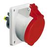 Gniazdo tablicowe Quick-Connect skośne 16A 3P+N+PE 200/346 do 240/415V 6h IP44 50 i 60Hz, Kołnierz i otwory montażowe: kołnierz 85x85 Otwory motażowe 70x70, Kolor indentyfikacyjny: czerwony RAL 3000, Izolator/Kontakty: Izolator z PA6 kontakty mosiężn
