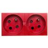 Gniazdo jest modelem podwójnym. Każda z jednostek została wyposażona w bolce uziemiający. Warto znać parametry elektryczne, przy jakich może pracować to gniazdo. Działa ono bowiem przy napięciu znamionowym o wartości 250 V, a z kolei wartość prądu znamionowego jest równa 16 A. Ten model jest dostępny w wyrazistym, czerwonym kolorze.