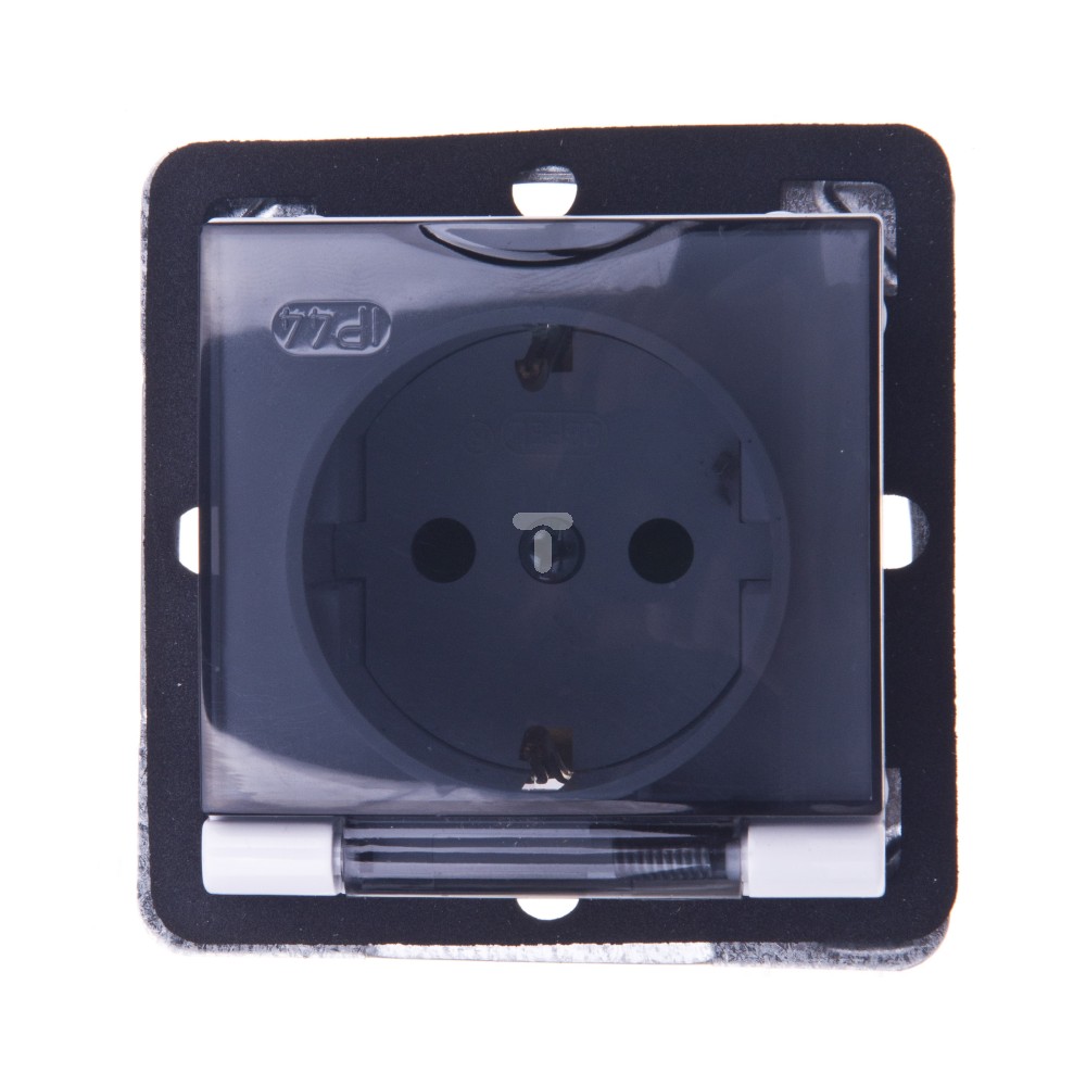 IMPRESJA Gniazdo hermetyczne z/u 16A schuko IP44 z klapką dymną i przesłonami białe GPH-1YSP/m/00/d