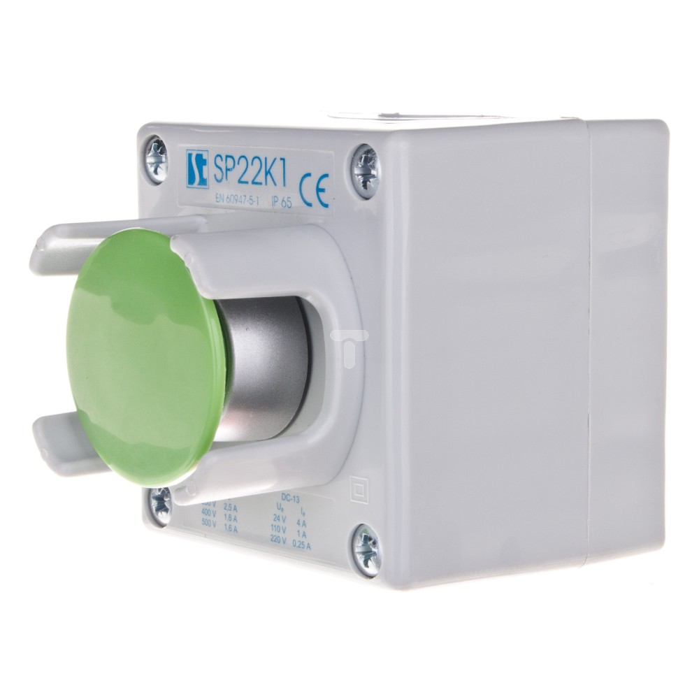 Kaseta sterownicza 1-otworowa przycisk grzybkowy z osłoną zielony 1Z szara IP65 SP22K1\26-1