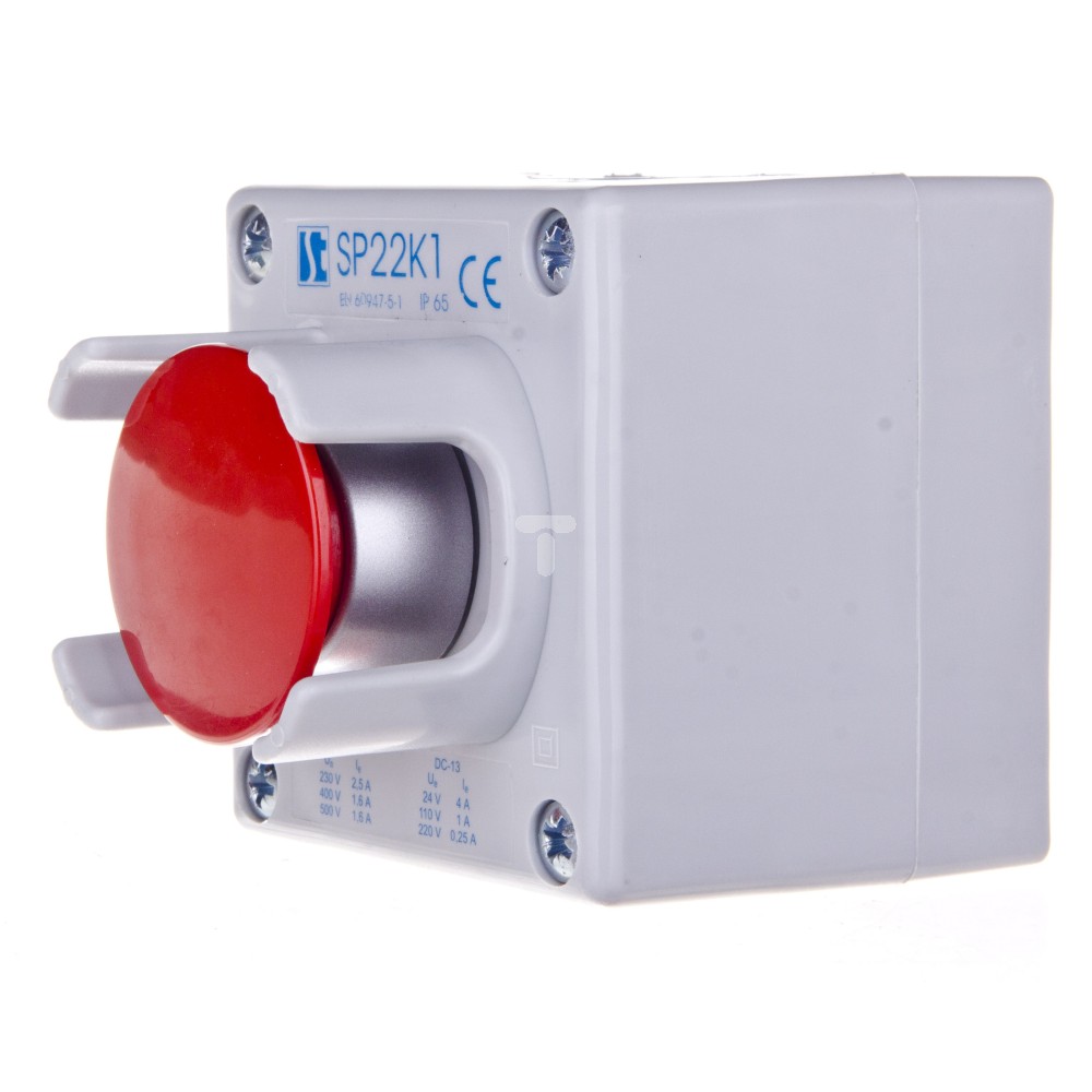 Kaseta sterownicza 1-otworowa przycisk grzybkowy z osłoną czerwony 1R szara IP65 SP22K1\25-1
