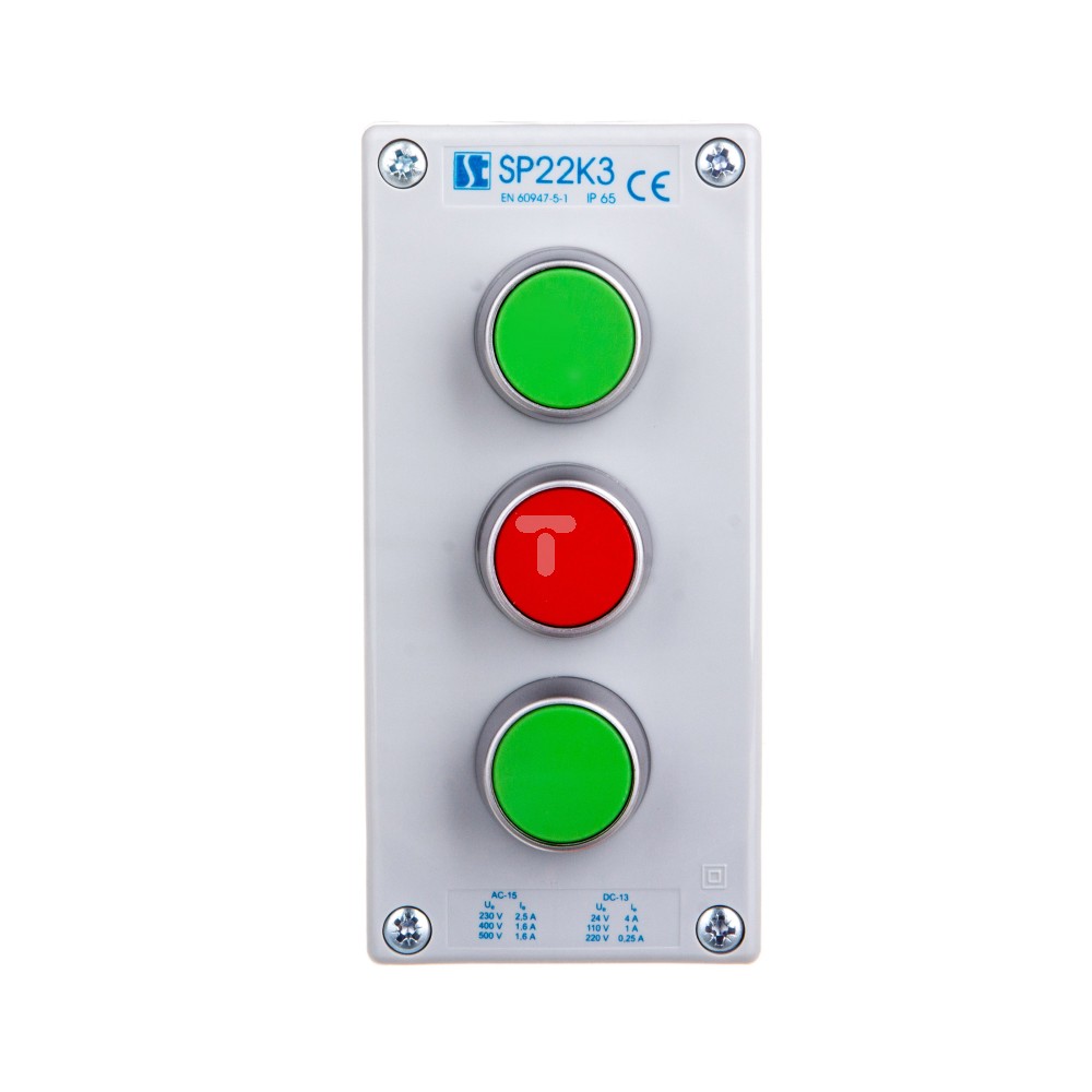 Kaseta sterownicza 3-otworowa 2xzielony/czerwony 2Z 1R IP65 1x membrana M20 szara SP22K3\02-2