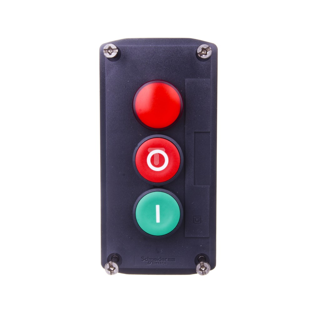 Kaseta sterownicza 3-otworowa I/O + lampka sygnalizacyjna czerwona 24V AC szara IP65 XALD363B