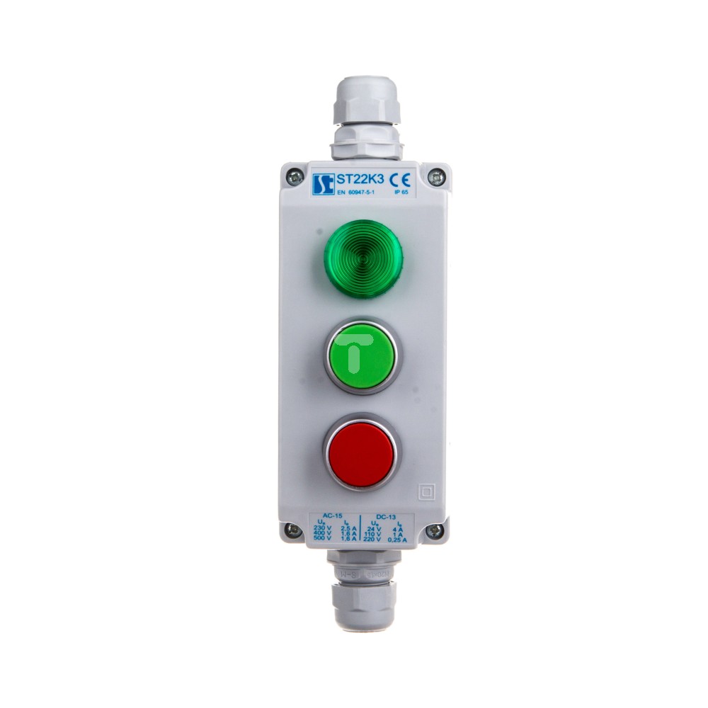 Kaseta sterownicza 3-otworowa zielony/czerwony/lampka zielona 230V IP65 1x membrana M20 szara ST22K3\06-2