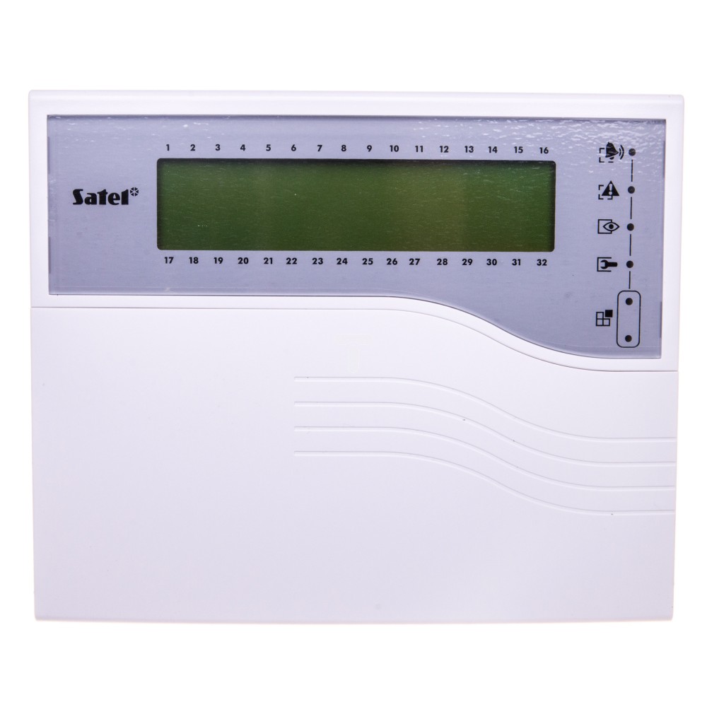 Klawiatura obsługi systemu alarmowego, LCD, 2 wejśćia, wersja K, do systemu Integra, Satel INTLCDK, diody LED informujące o stanie systemu, alarmy NAPAD, POŻAR, POMOC wywoływanez klawiatury, sygnalizacja utraty łączności z centralą, łącze RS–232 do współpracy z programem GUARDX.