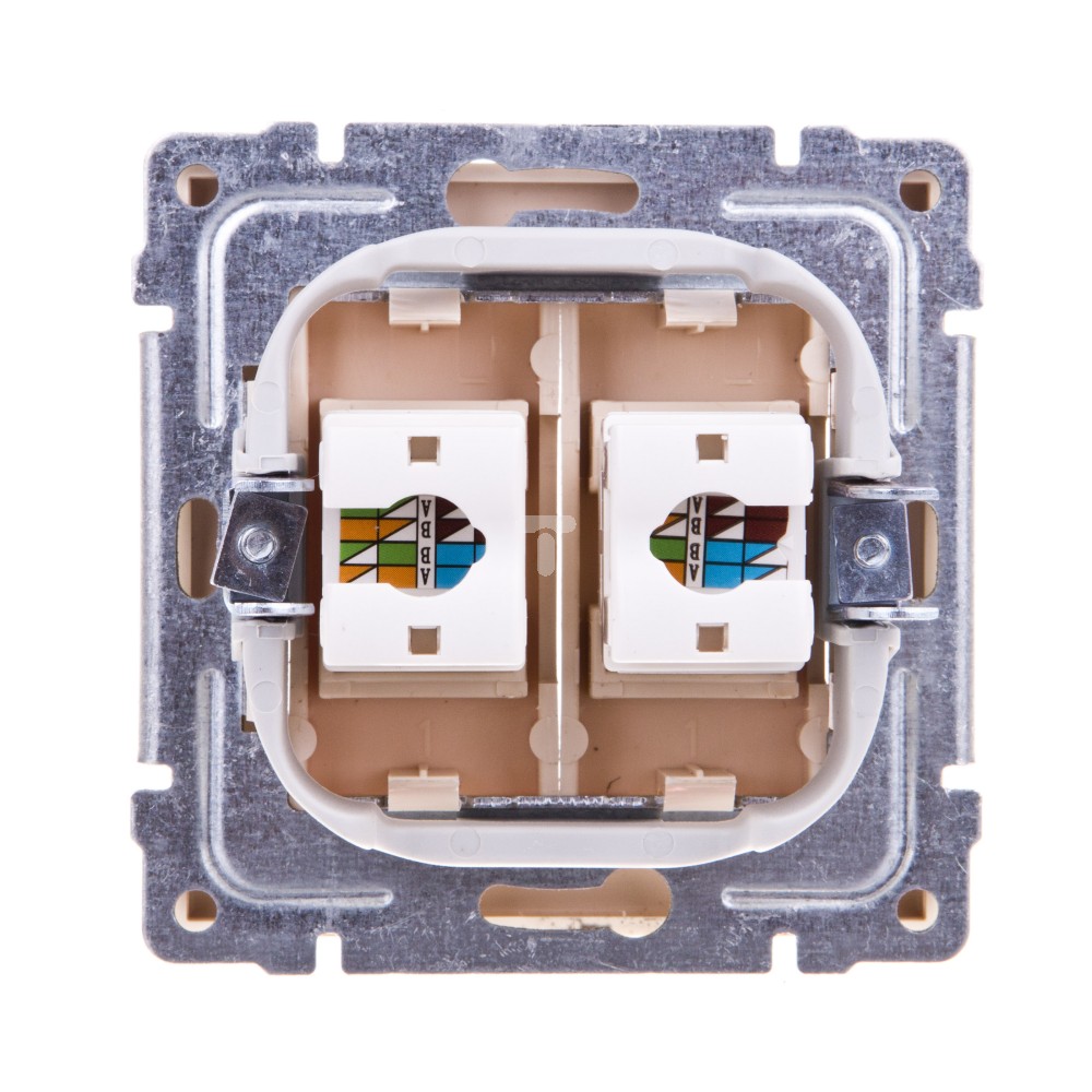 KOS66 Gniazdo komputerowe podwójne 2xRJ45 kat.5e nieekranowane z etykietą kremowe 660367