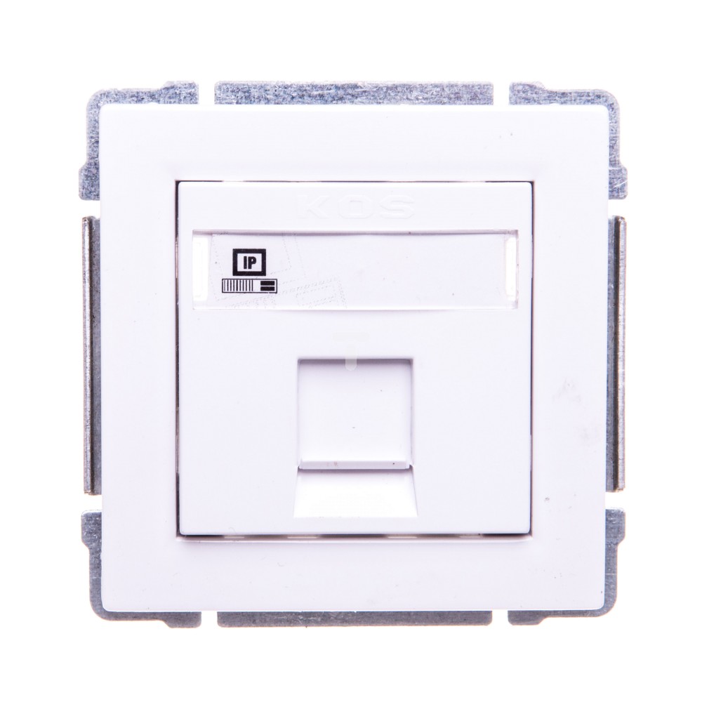 KOS66 Gniazdo komputerowe pojedyncze RJ45 MOLEX kat.5e nieekranowane z przesłoną i etykietą białe 660465