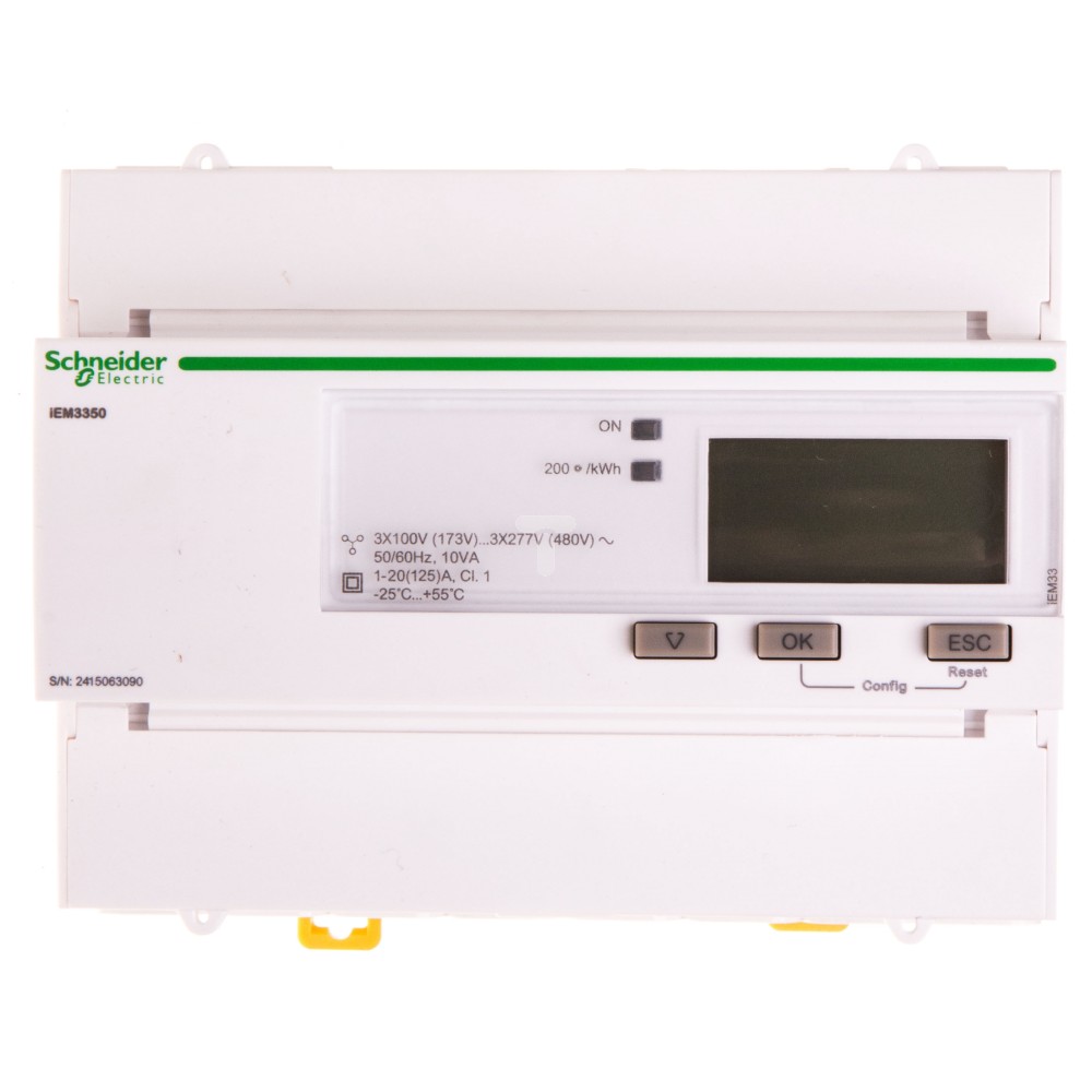 Licznik energii elektrycznej 1/3-fazowy 125A 100-277/173-480V kl.1/B Modbus taryfowy cyfrowy modułowy A9MEM3350