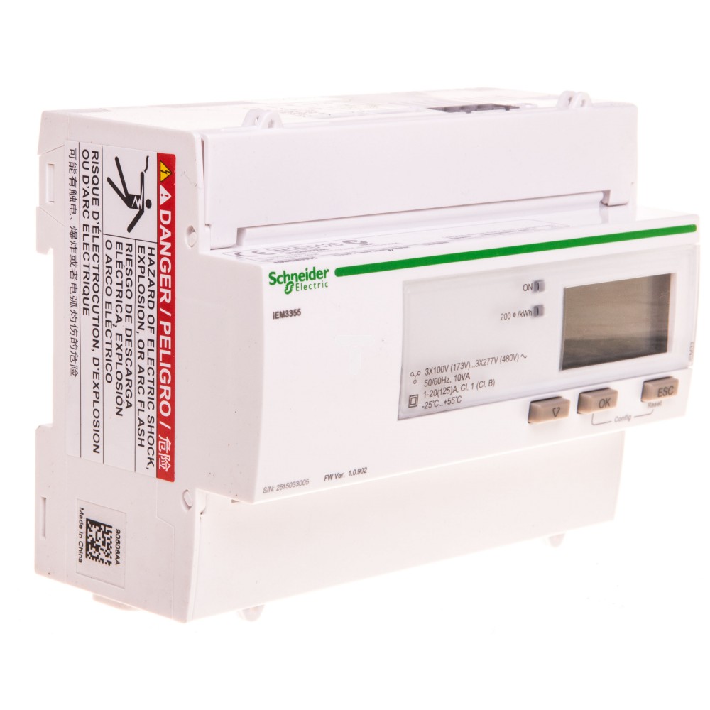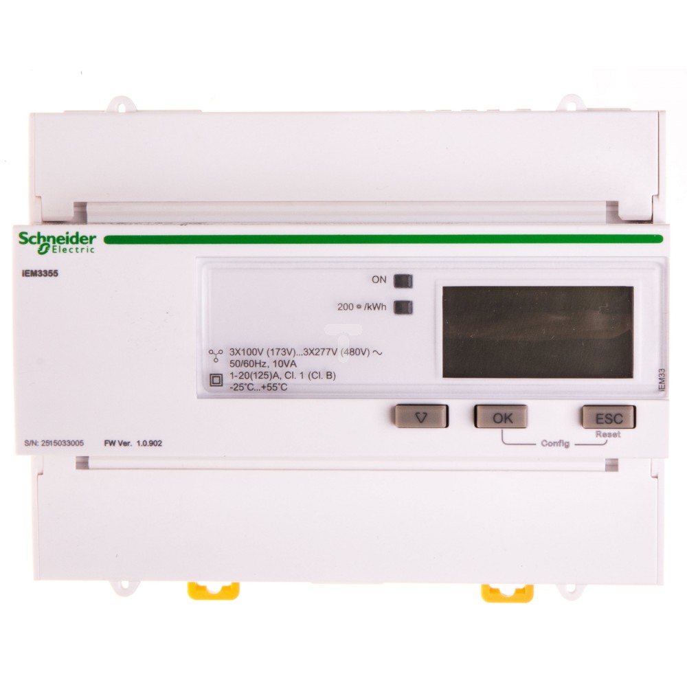 Licznik energii elektrycznej 1/3-fazowy 125A 100-277/173-480V kl.1/B Modbus MID taryfowy cyfrowy modułowy A9MEM3355
