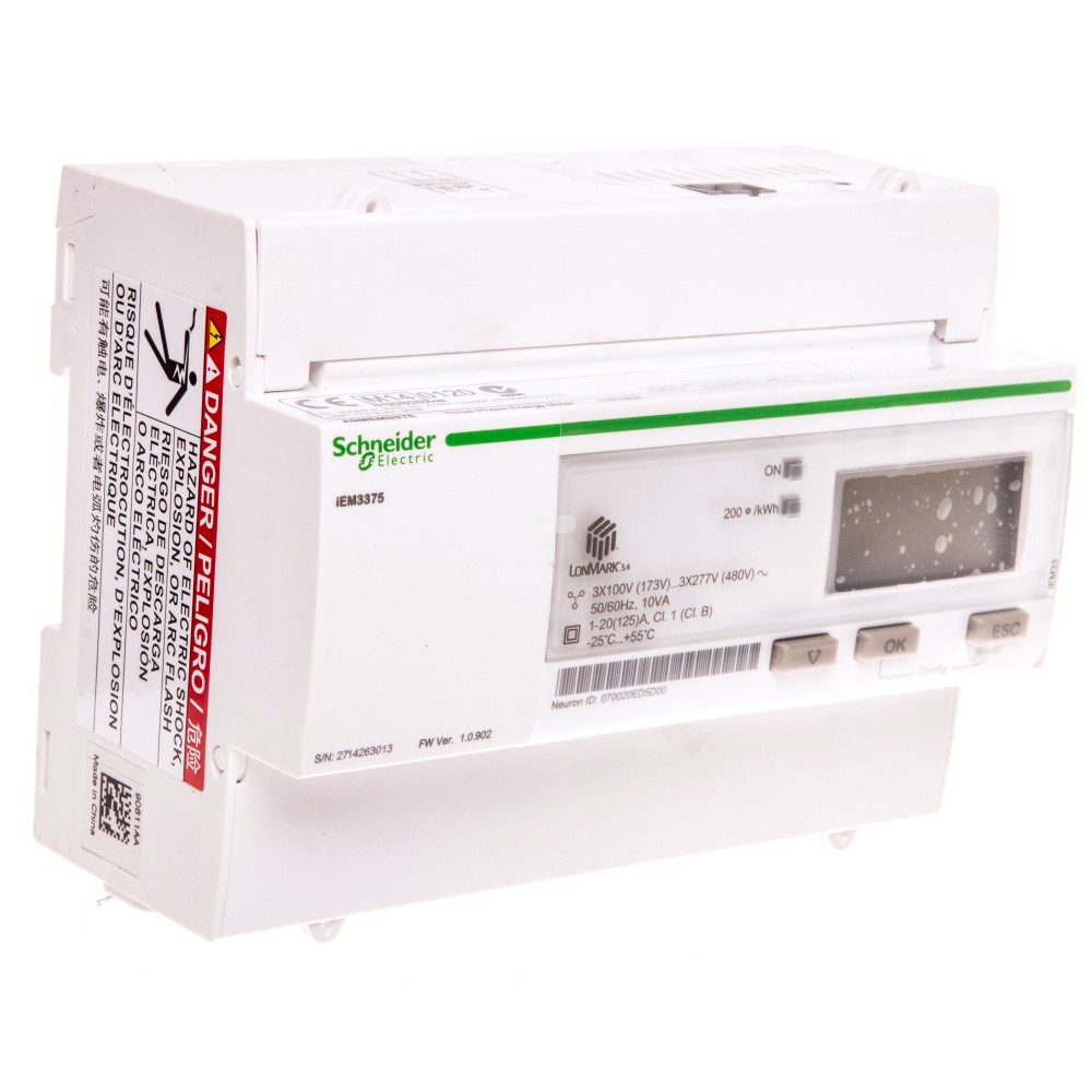 Licznik energii elektrycznej 1/3-fazowy 125A 100-277/173-480V kl.1/B LON MID taryfowy cyfrowy modułowy A9MEM3375