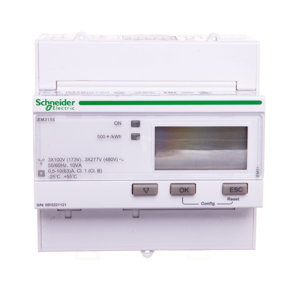 Licznik energii elektrycznej 1/3-fazowy 63A 100-277/173-480V kl.1/B Modbus MID taryfowy cyfrowy modułowy iEM3155 A9MEM3155