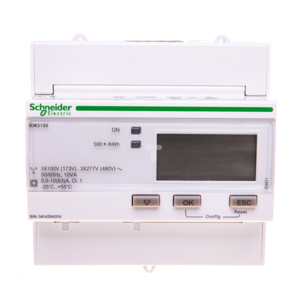 Licznik energii elektrycznej 1/3-fazowy 63A 100-277/173-480V kl.1 Modbus cyfrowy modułowy iEM3150 A9MEM3150