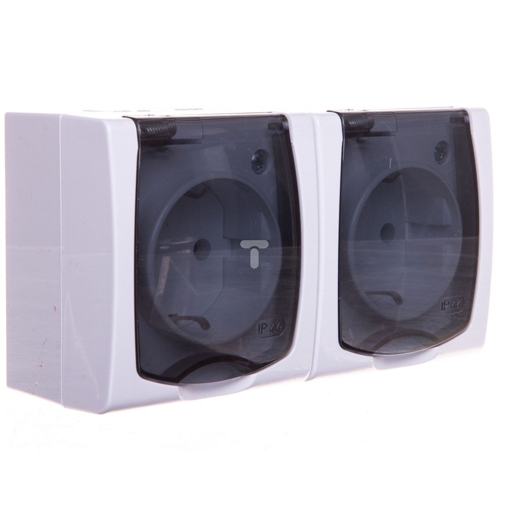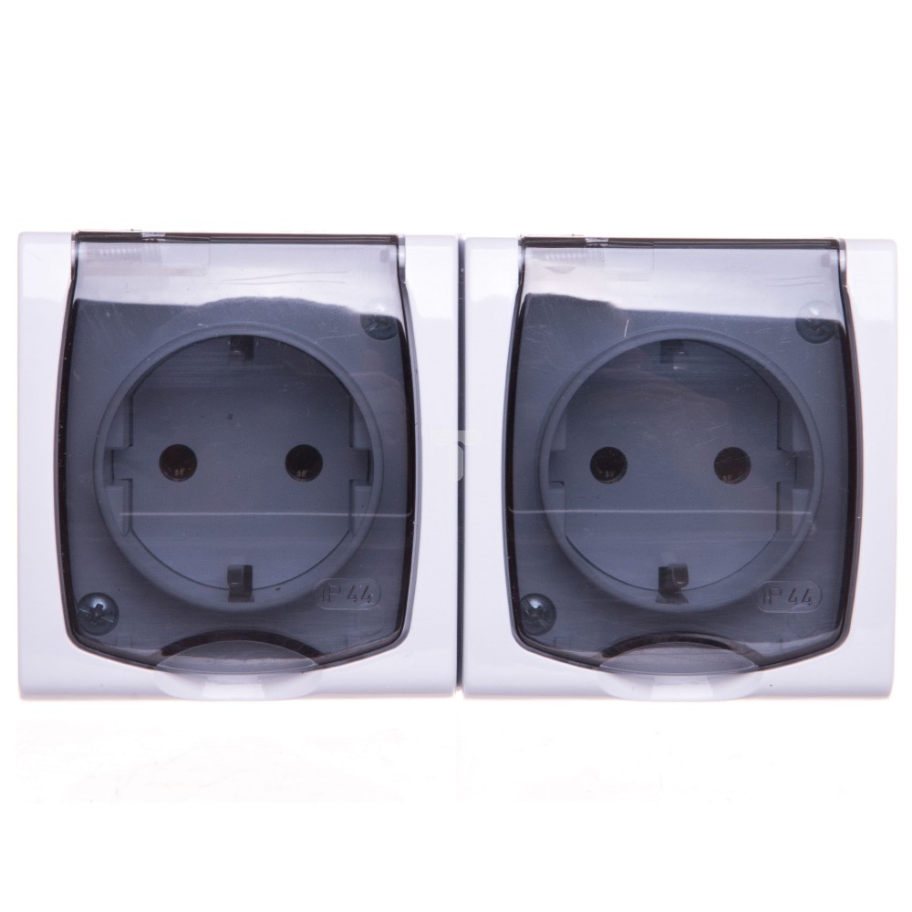 MADERA Gniazdo hermetyczne podwójne z/u SCHUKO 16A IP44 z klapką przezroczystą białe GNH-2NS/00/d