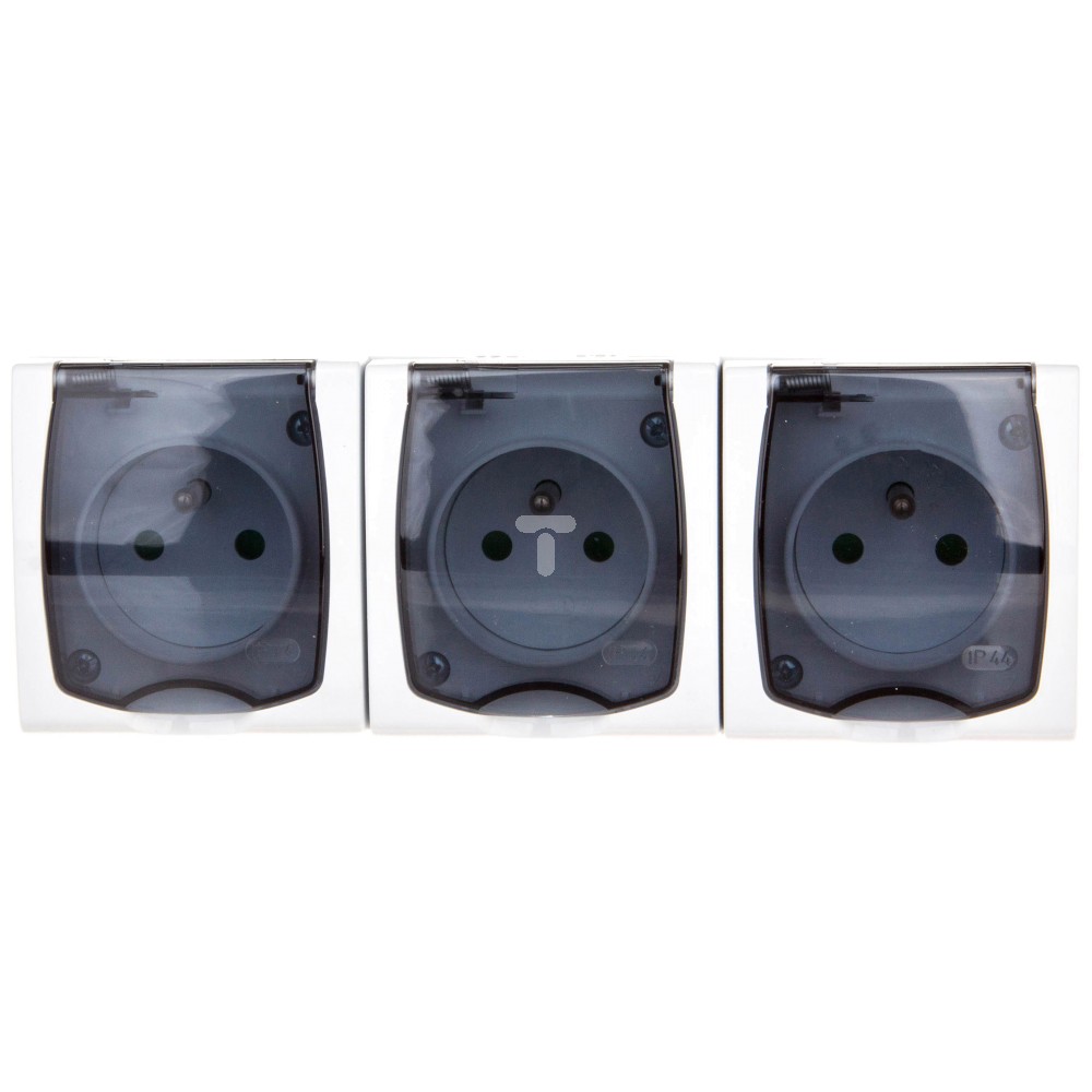 MADERA Gniazdo hermetyczne potrójne z/u 16A IP44 z przesłonami torów i klapką przezroczystą białe GNH-3NZP/00/d