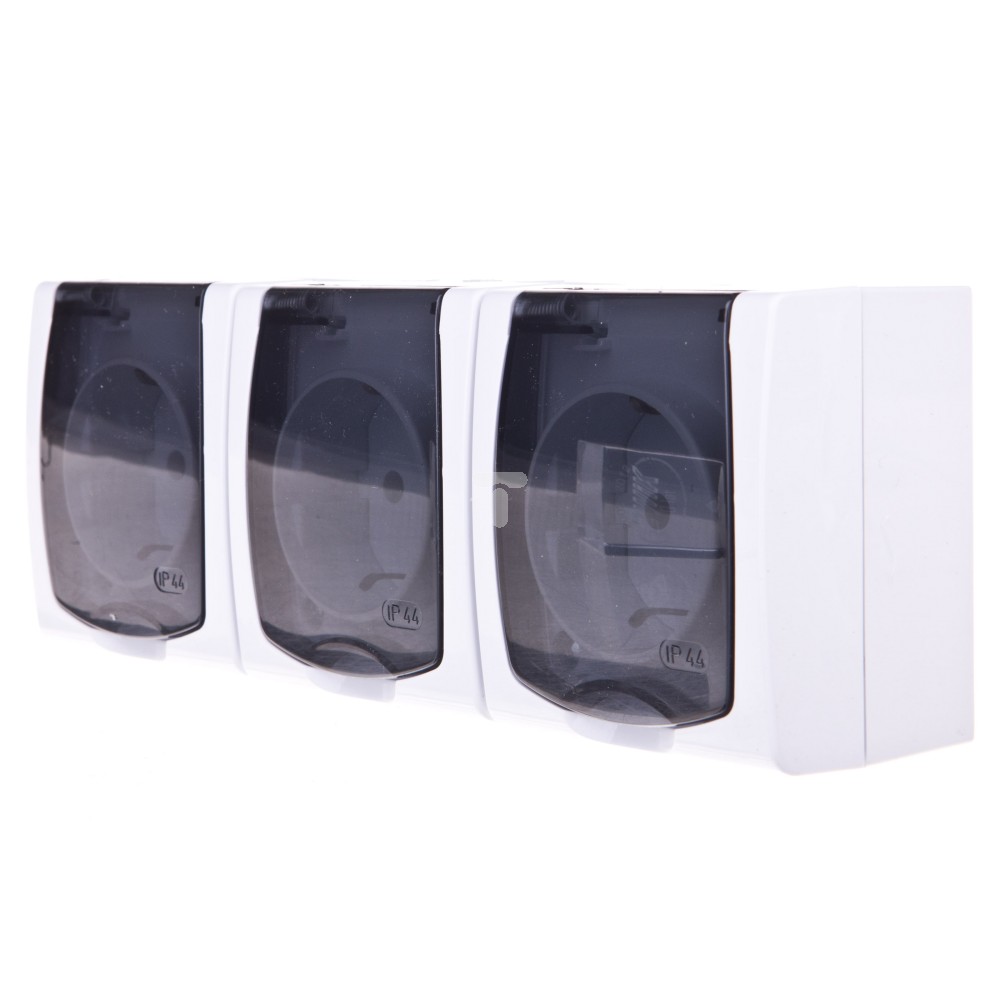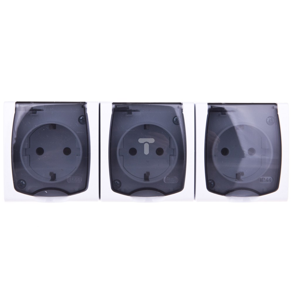 MADERA Gniazdo hermetyczne potrójne z/u SCHUKO 16A IP44 z klapką przezroczystą białe GNH-3NS/00/d