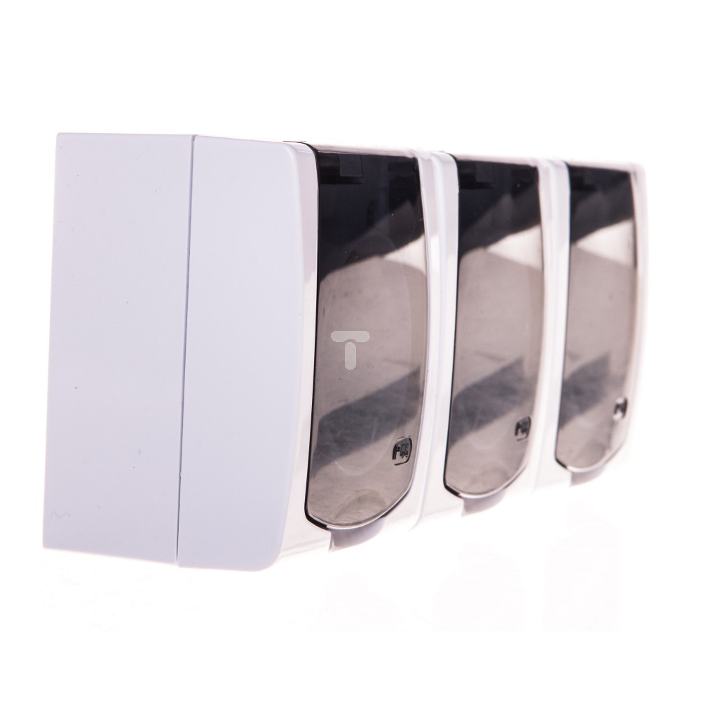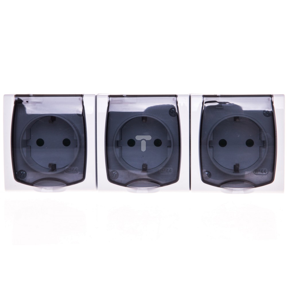 MADERA Gniazdo hermetyczne potrójne z/u SCHUKO 16A IP44 z przesłonami torów i klapką przezroczystą białe GNH-3NSP/00/d