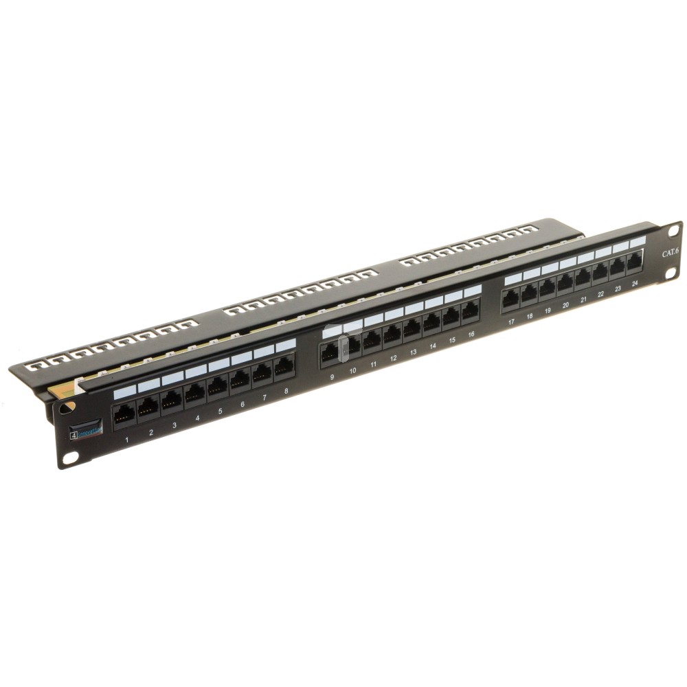 Panel krosowy 1RU - 24 x RJ45 UTP - Kat 6+ IDC - prosty + etykiety - czarny M305117