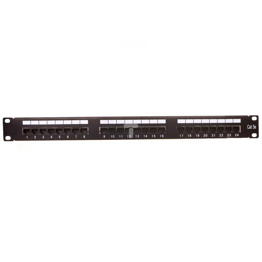 Patch panel kompletny 19 cali 24x RJ45 U/UTP kat. 5e czarny (RAL 9005) z tacką DN-91524U-EC