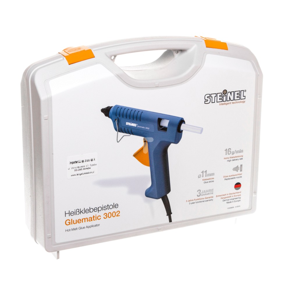 Powyższy pistolet do klejenia na gorąco został wyprodukowany przez znany niemiecki koncern Steinel. Pistolet umieszczono w walizce, dzięki której urządzenie będzie bezpieczne oraz będzie ją można bez problemu zabierać ze sobą. Czas nagrzewania pistoletu wynosi 7 minut. Maksymalna wydajność kleju wynosi 16 g/min. Maksymalna średnica pręta to 11,2 mm. Znamionowy pobór mocy dla tego pistoletu dochodzi do 45 W. Całkowita waga urządzenia wynosi 0,32 kg. Urządzenie sprawdzi się zarówno u klientów indywidualnych, jak i korporacyjnych. Wyprodukowano go z najlepszej jakości materiałów, które zapewniają długą i bezpieczną pracę urządzenia.