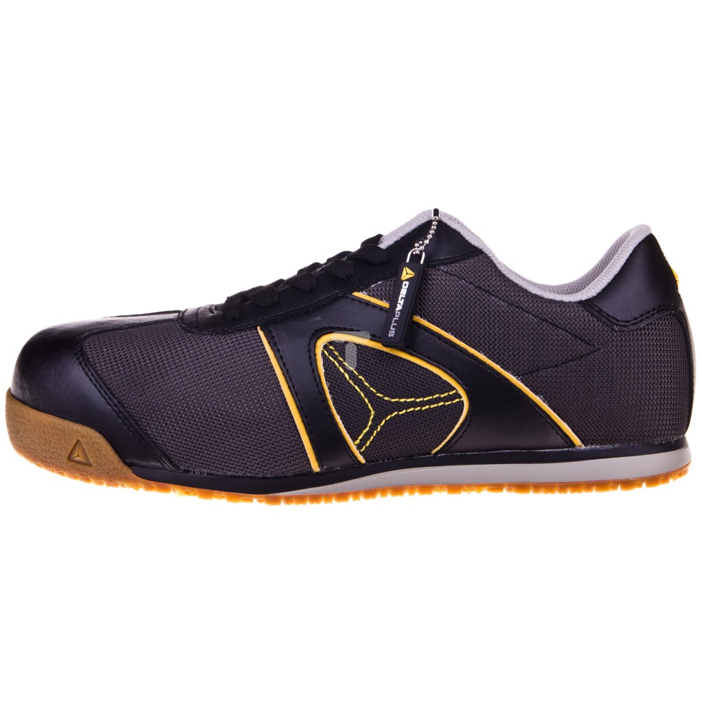 Półbuty pochodzą z oferty katalogowej firmy Delta Plus. Oferowany przez nią asortyment skutecznie zabezpiecza określone części ciała, co jest doceniane nawet przez szczególnie wymagających klientów. Cholewa obuwia została wykonana z pełnej skóry licowej i materiału typu mesh, który cechuje się wytrzymałością na najwyższym poziomie. Dzięki stałej wkładcę z poliestru oraz podszewce, półbuty chronią przed zimnem oraz wnikaniem wilgoci. Co więcej, obuwie posiada pochłaniacz energii w obcasie. Wykona