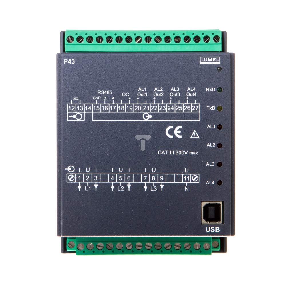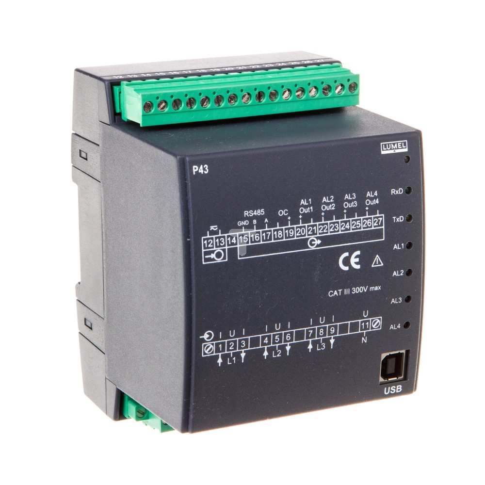 Programowalny przetwornik sieci 3-fazowej wejście I 5A wejście U 3x57,7/100V zasilanie 85-253V AC 90-320V DC wyjście 4 analog. b