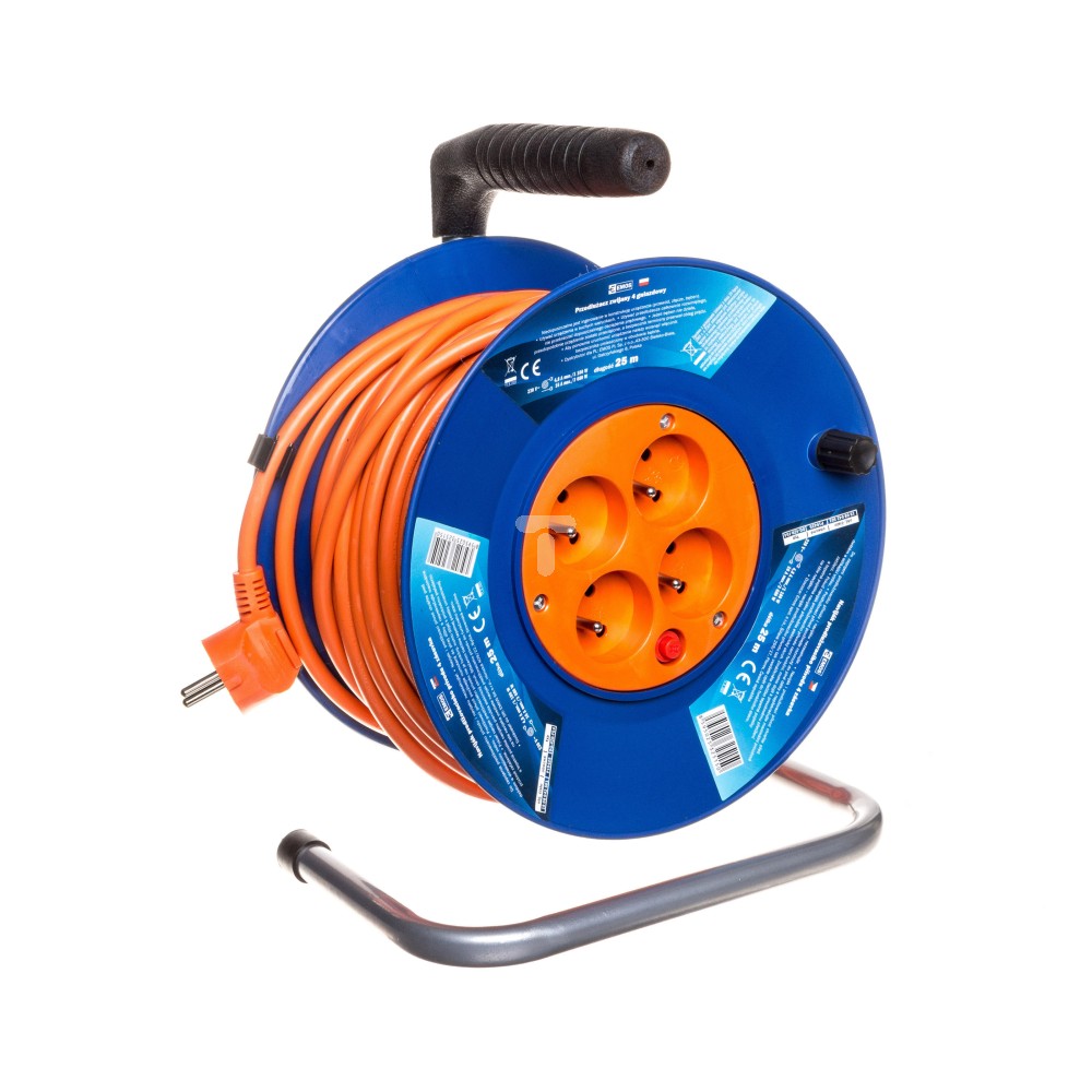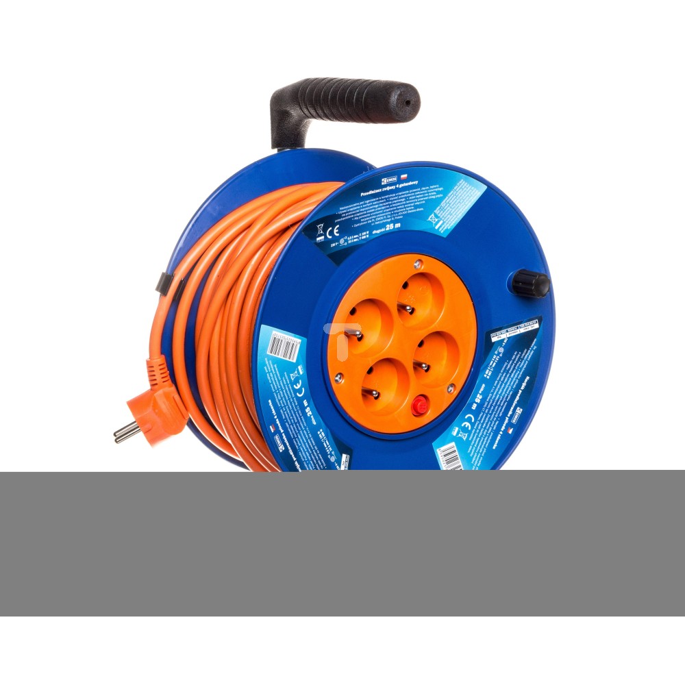 Przedłużacz 25m zwijany 4-gniazda z/u pomarańczowy 3x1,5 z zabezpieczeniem termicznym 1908042501 P19425