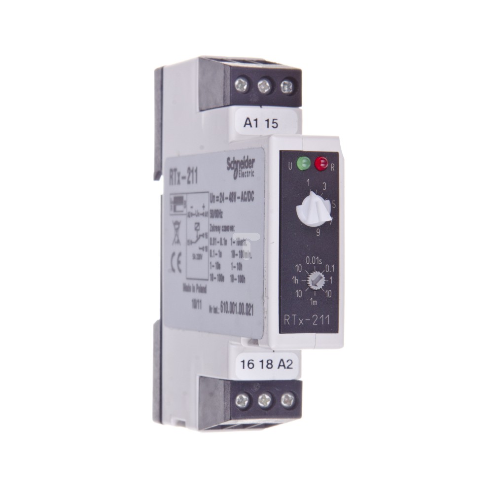 Przekaźnik czasowy 1P 5A 0,01sek-100h 24-48V AC/DC załączenie na nastawiony czas RTX-211 24/48