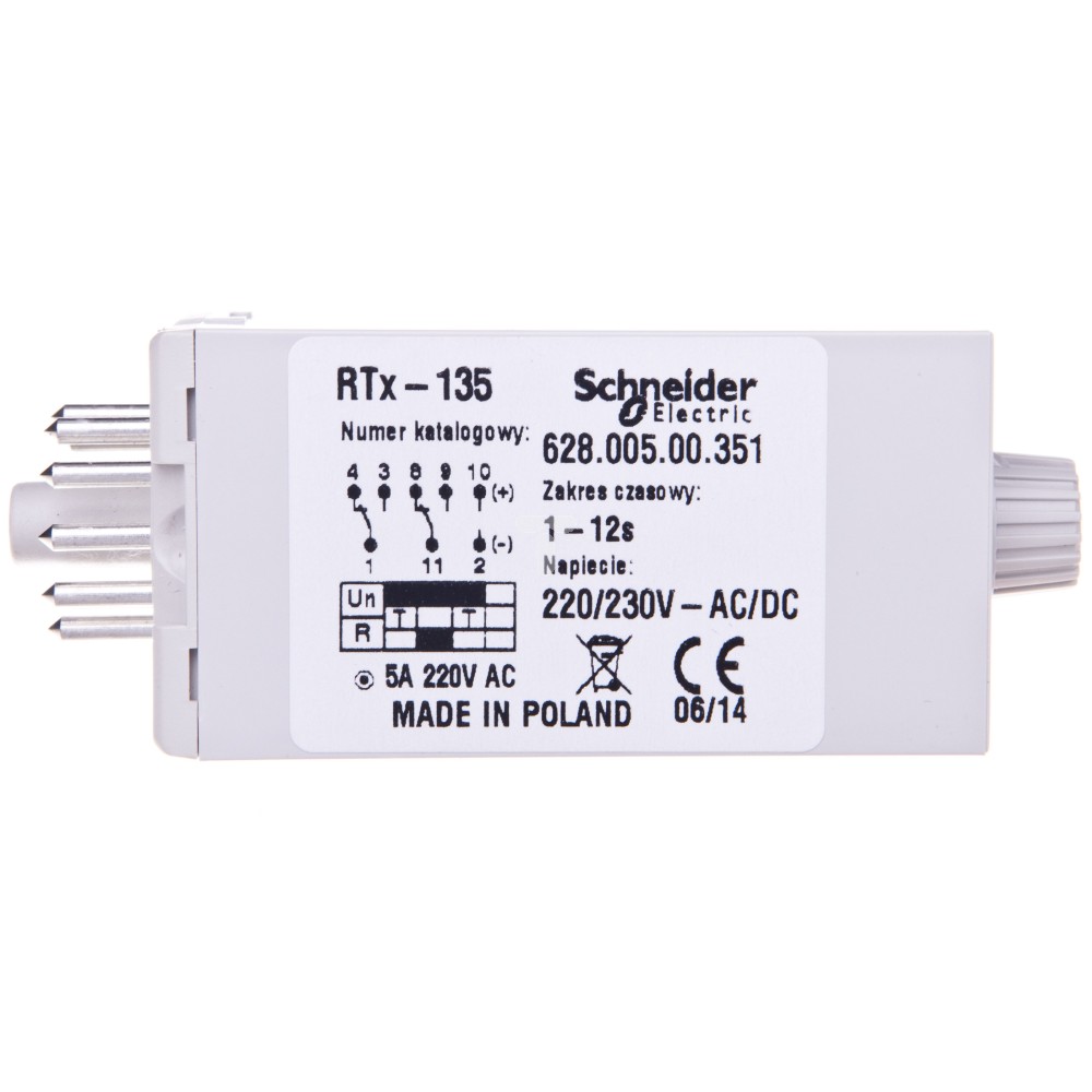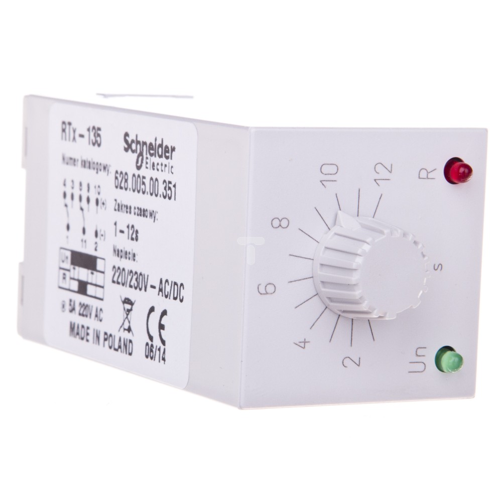 Przekaźnik czasowy jednofunkcyjny 2P 5A 1-12sek 220-230V AC/DC praca cykliczna RTX-135 220/230 12SEK 2002681