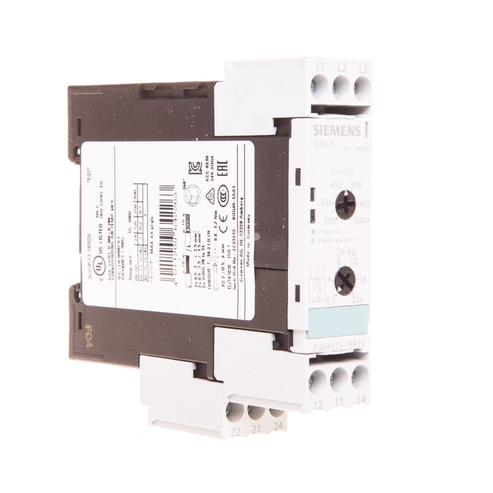 Przekaźnik kolejności, zaniku faz i obniżenia napięcia 2P 3A 0,1-20sek 160-690V AC 3UG4513-1BR20