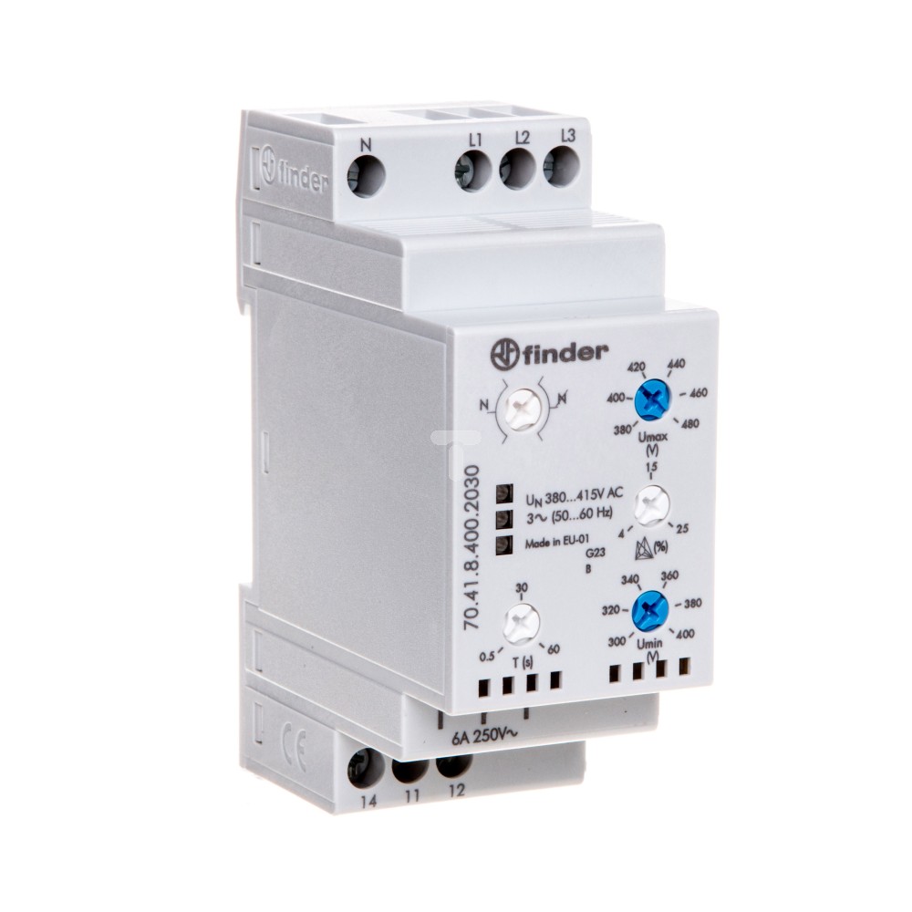 Przekaźnik kontroli napięcia 3-fazowy kontrola N, zaniku faz, rotacji, asymetria 1P 6A 380-415V 70.41.8.400.2030
