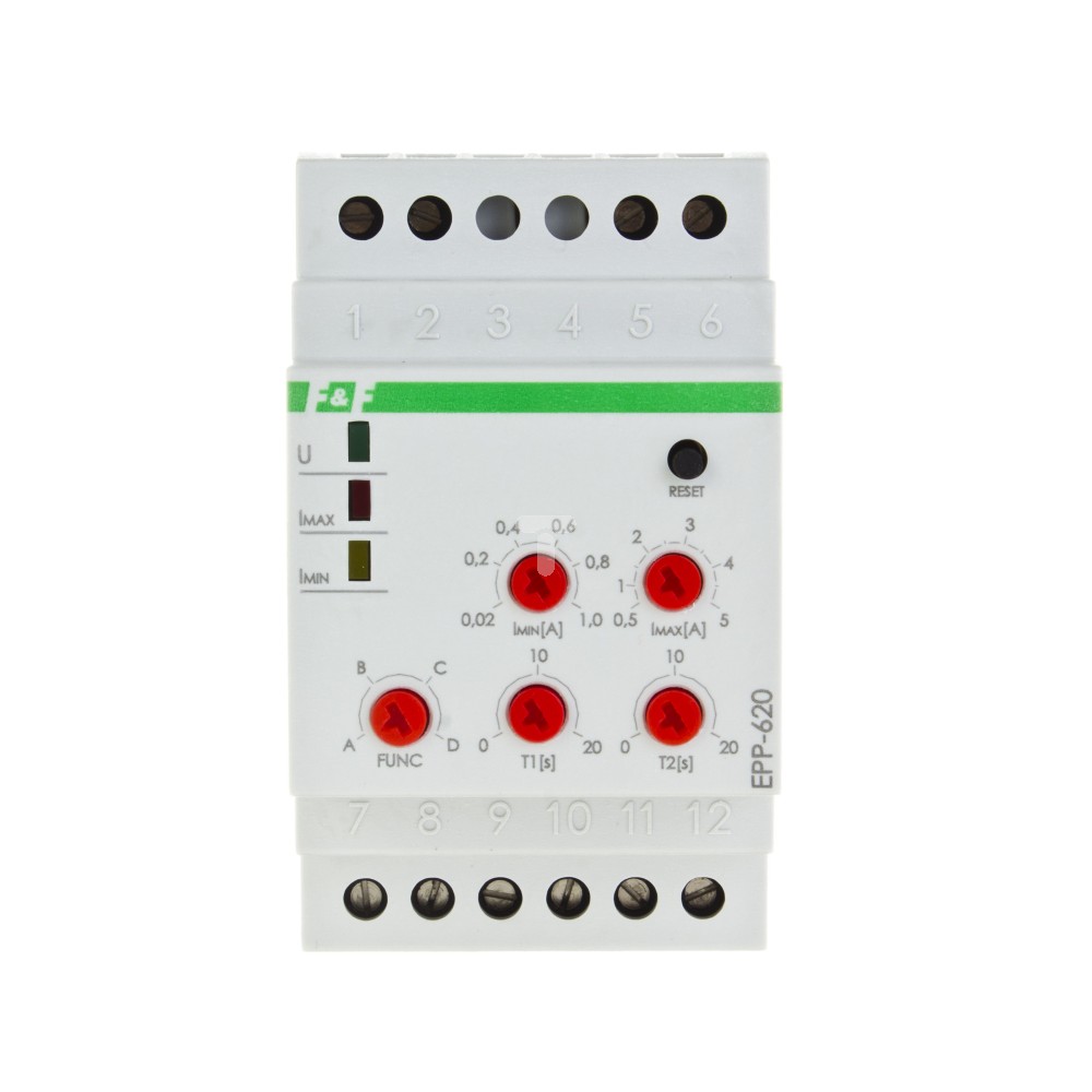 Przekaźnik kontroli prądu 4-funkcyjny 0,02-1/0,5-5A 2P 0-20sek (praca z przekładnikiem 5A) EPP-620