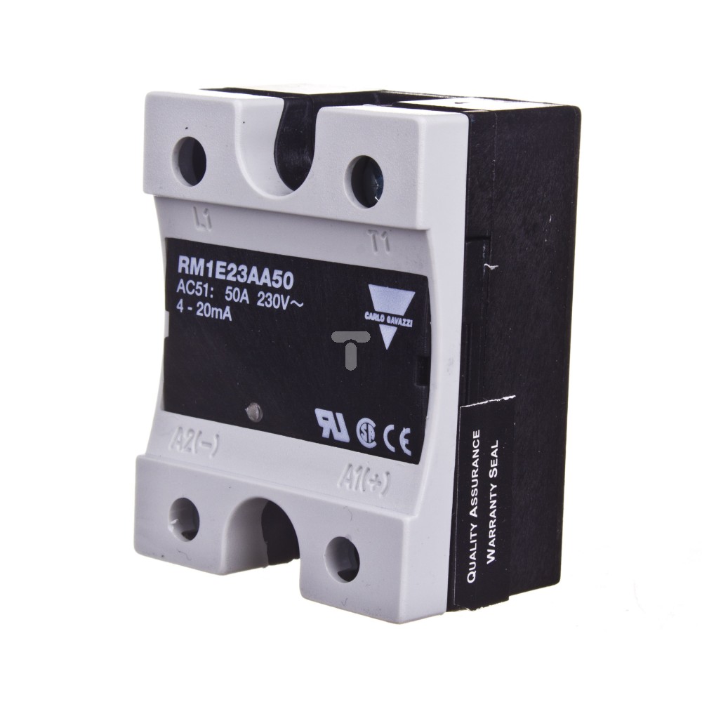 Przekaźnik półprzewodnikowy RM1E jednofazowy umożliwia sterowanie analogowym liniowym sygnałem prądowym od 4 do 20 mA, który opiera się na zasadzie sterowania fazowego. Polega to na liniowej zmianie wypełnienia napięcia sterowanego sieci na obciążeniu. Przekaźnik półprzewodnikowy wyłącza każdorazowo obciążenie przy przejściu prądu obciążenia przez wartość zero. Co więcej, moment załączenia obciążenia jest proporcjonalny do wejściowego prądu sterującego. Przekaźnik półprzewodnikowy jednofazowy zo