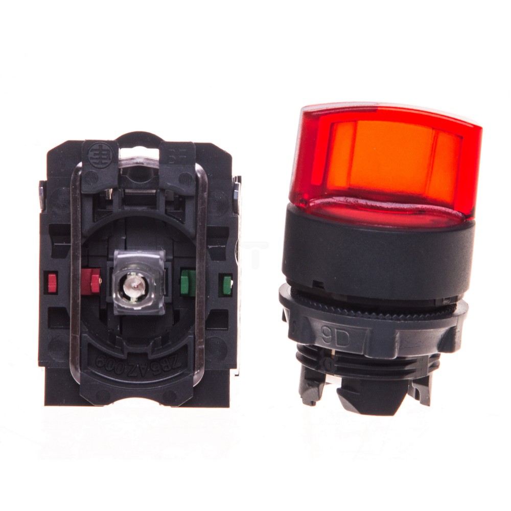 Przełącznik 2 położeniowy pokrętło 22mm czerwony 1Z 1R bez samopowrotu z podświetleniem 230V AC XB5AK124M5