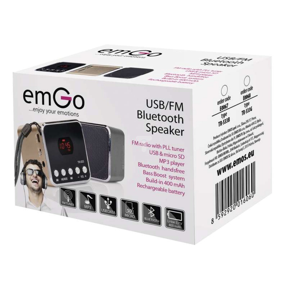 Przenośny odtwarzacz multimedialny radio FM USB z cyfrowym wyświetlaczem soundbox emgo TR533B szary E0067