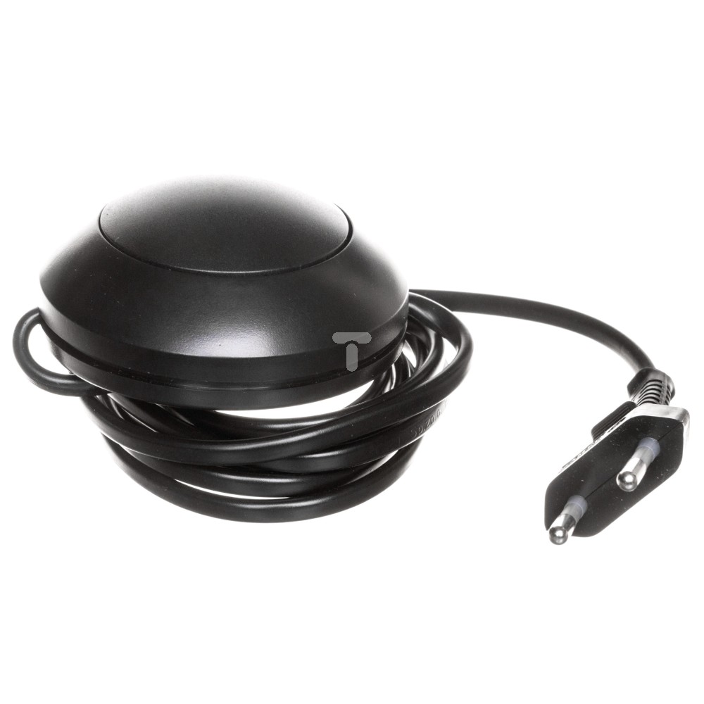 Przewód H03VVH2-F 2 x 0,75 mm2, o długości 200 cm,płaska wtyczka i łącznik nożny 2,5 A / 250 V AC z tworzywa sztucznego zamontowany 50 cm od końca przewodu.Opakowanie: woreczek z zawieszką. Kolor czarny.