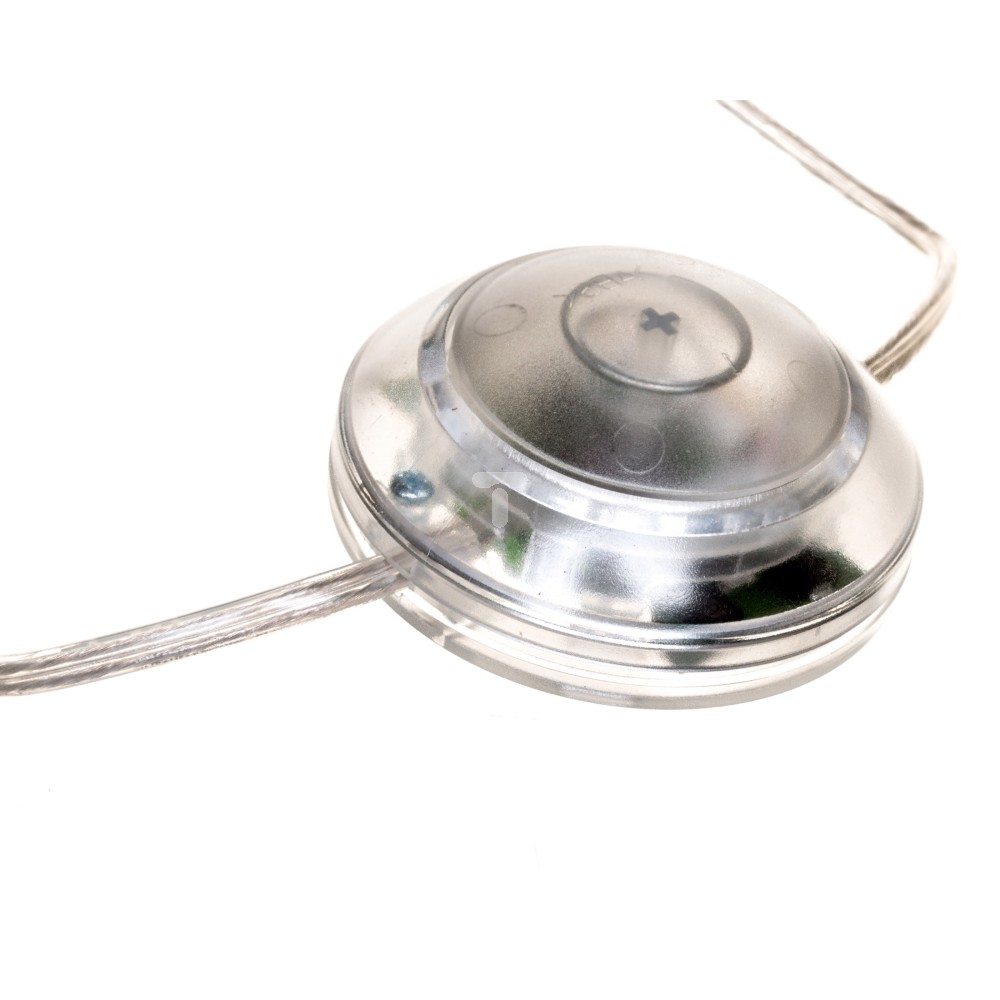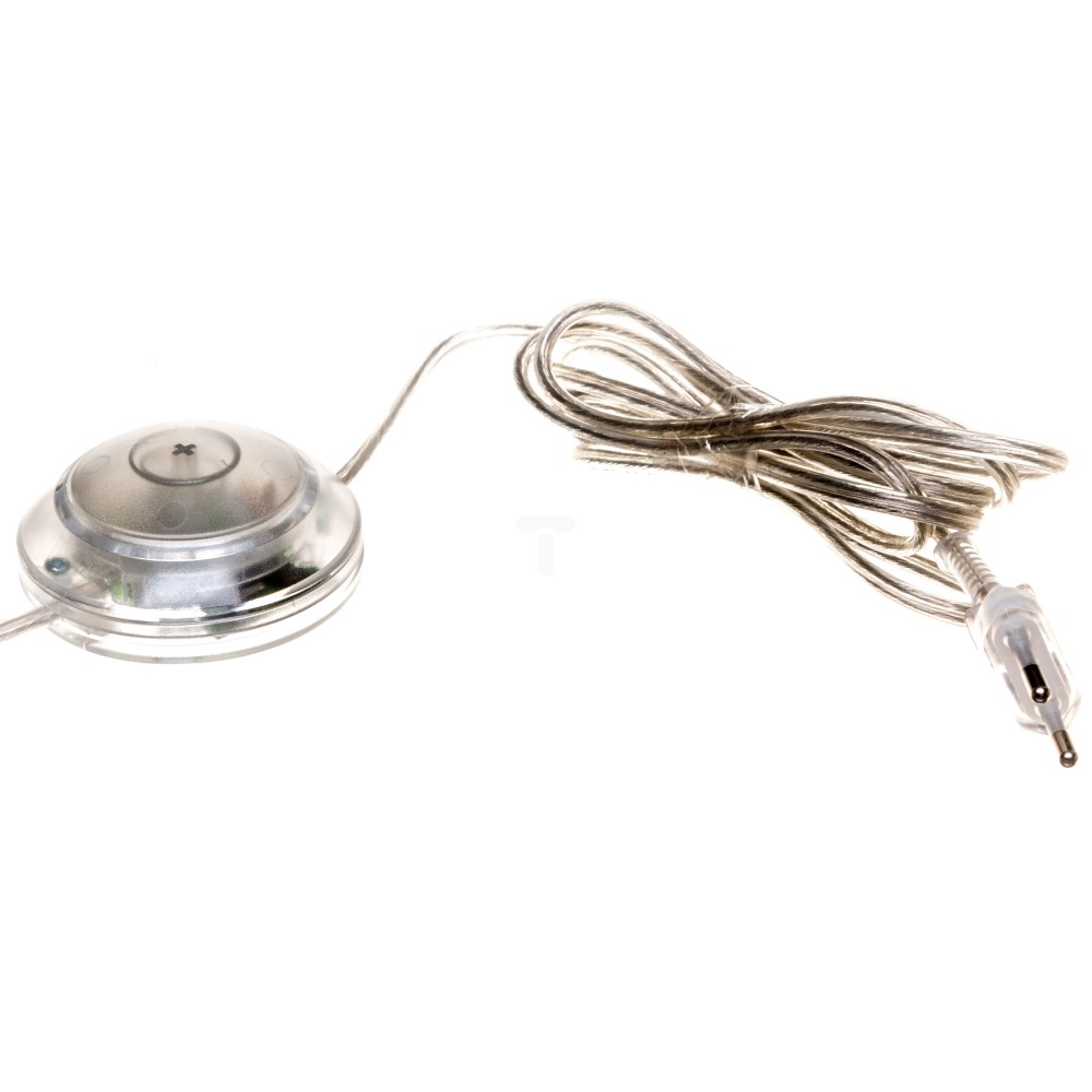 przewód H03VVH2-F 2 x 0,75 mm2, o długości 200 cm,płaska wtyczka i łącznik nożny z tworzywa sztucznego wraz z wbudowanym ściemniaczem zamontowany 150 cm od wtyczki na przewodzie,funkcja symulacji obecności,moc obciążenia 15 ÷ 150 W,sterowanie oświetleniem poprzez wbudowany przycisk (funkcja płynnego rozjaśniania, ściemniania, załączenie i wyłączenie, symulacja obecności),element sterujący – wysokowydajne tranzystory MOS,dostępny luzem (wiązka po 25 szt.) lub w opakowaniach jednostkowych (blister),inne wykonania dostępne na zamówienie (długość, umieszczenie łącznika itp.)