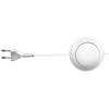 Przewód H03VVH2-F 2 x 0,75 mm2, o długości 300 cm,płaska wtyczka i łącznik nożny 2,5 A / 250 V AC z tworzywa sztucznego zamontowany 50 cm od końca przewodu.Opakowanie: woreczek z zawieszką. Kolor biały.