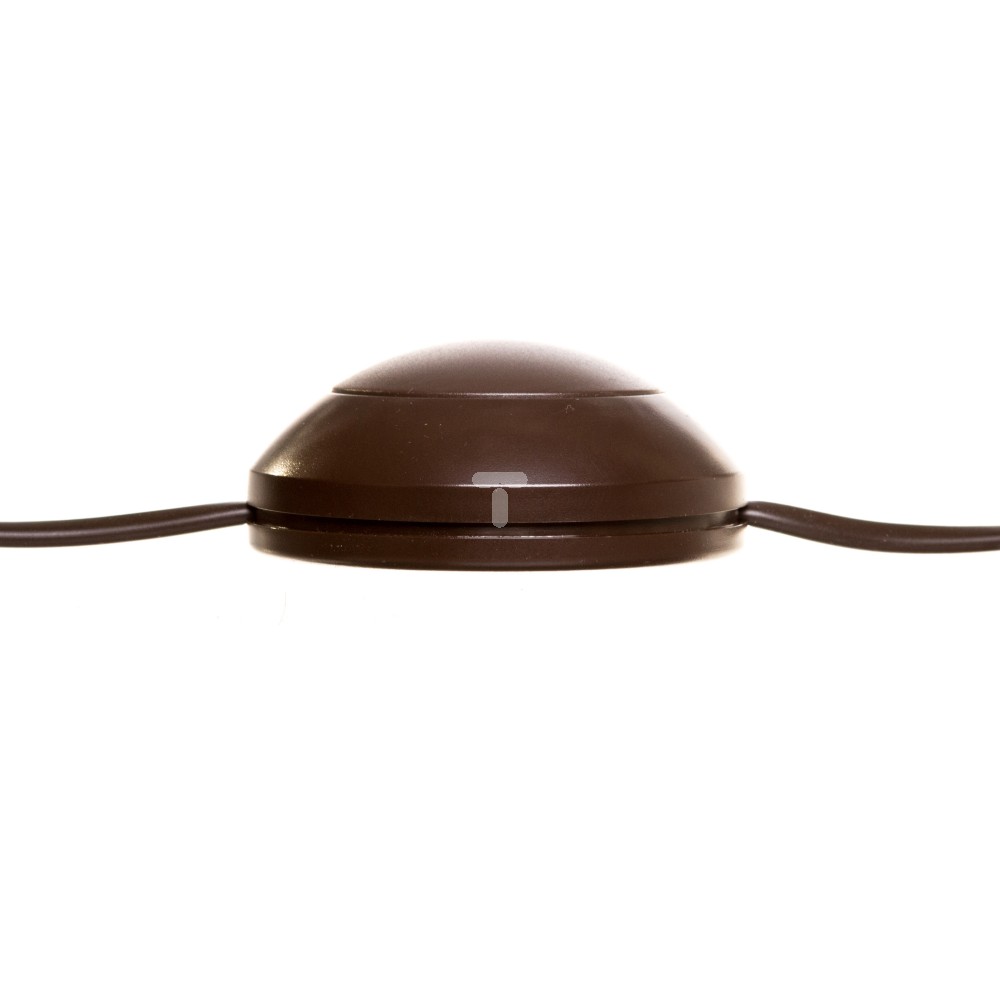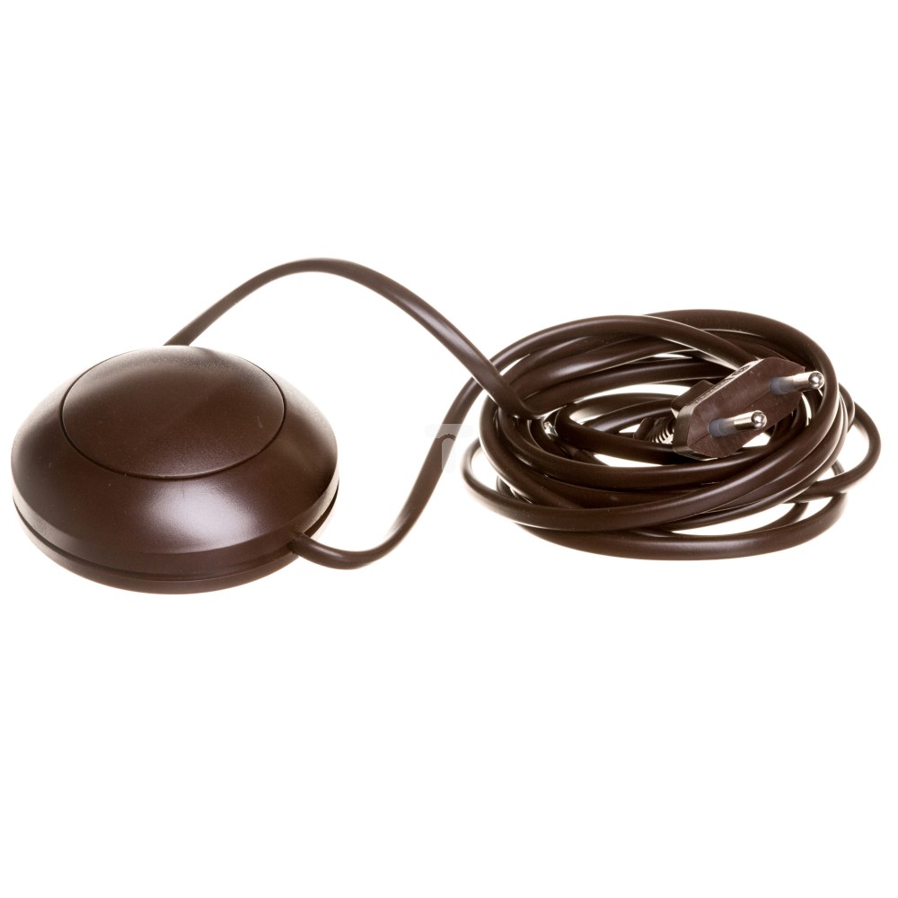 Przewód H03VVH2-F 2 x 0,75 mm2, o długości 300 cm,płaska wtyczka i łącznik nożny 2,5 A / 250 V AC z tworzywa sztucznego zamontowany 50 cm od końca przewodu.Opakowanie: woreczek z zawieszką. Kolor brązowy.