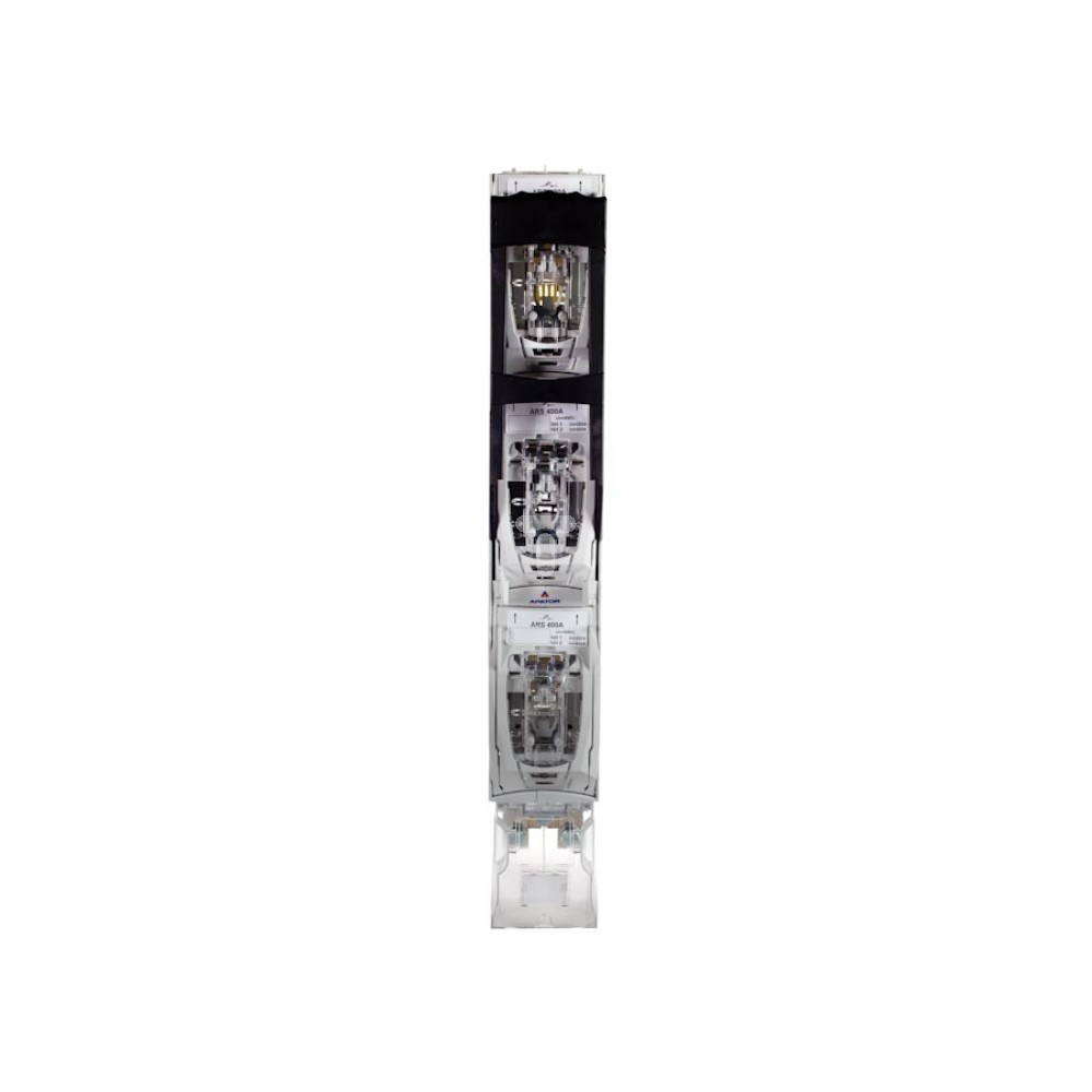 Rozłącznik bezpiecznikowy jest częścią serii ARS. Ta grupa rozłączników jest przeznaczona do rozdziału energii elektrycznej oraz do zabezpieczenia przed zwarciem i przeciążeniem w trójfazowym obwodzie prądu przemiennego. Linia produktów ARS sprawdzi się w aplikacjach typu złącza kablowo - rozdzielcze. Rozłącznik bezpiecznikowy został wykonany z termoplastycznego poliamidu z bezhalogenowym uniepalniaczem V2, który został wzbogacony o włókno szklane. Urządzenie jest przystosowane do wkładek bezpiecznikowych NH2 i montuje się go na moście szynowym, którego rozstaw jest równy 185 mm. Załączanie w rozłączniku jest 3 - biegunowe, gdzie 3 fazy są załączane jednym uchwytem. Ponadto każda faza ma 2 komory gaszeniowe, które są uzbrojone metalowymi płytkami dejonizacyjnymi. Produkt posiada dwuprzerwowy układ stykowy, a przyłącze kablowe łączy się za pomocą zacisku śrubowego M10. Maksymalne napięcie znamionowe w rozłączniku może wynieść 690 V AC, znamionowy warunkowy prąd zwarciowy jest równy 100 kA, a ciągły prąd znamionowy wynosi 400 A. Urządzenie ma szerokość 100 mm. Jego producentem jest renomowana firma APATOR.